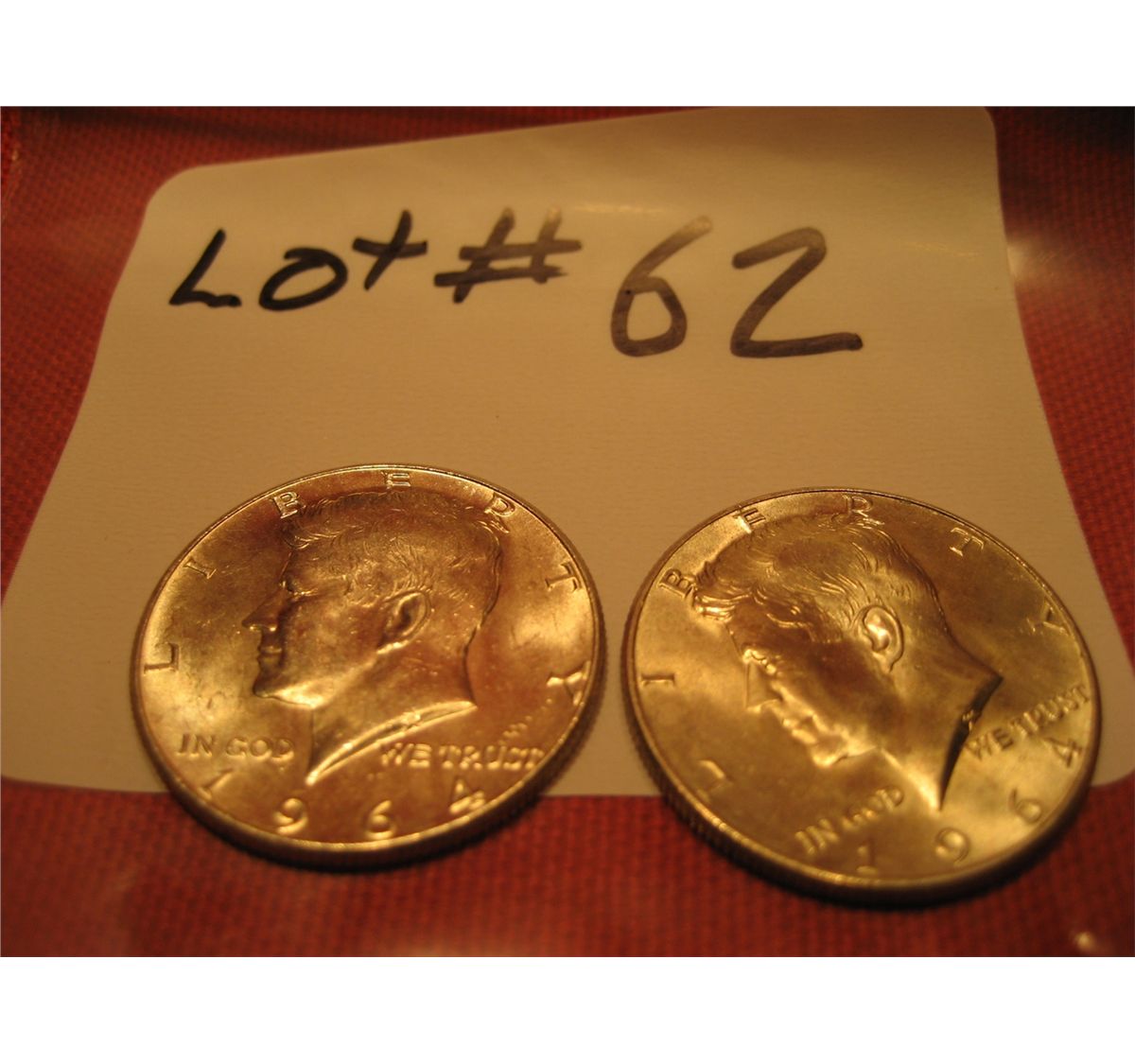 (2) 1964D KENNEDY HALF DOLLAR 90% SILVER