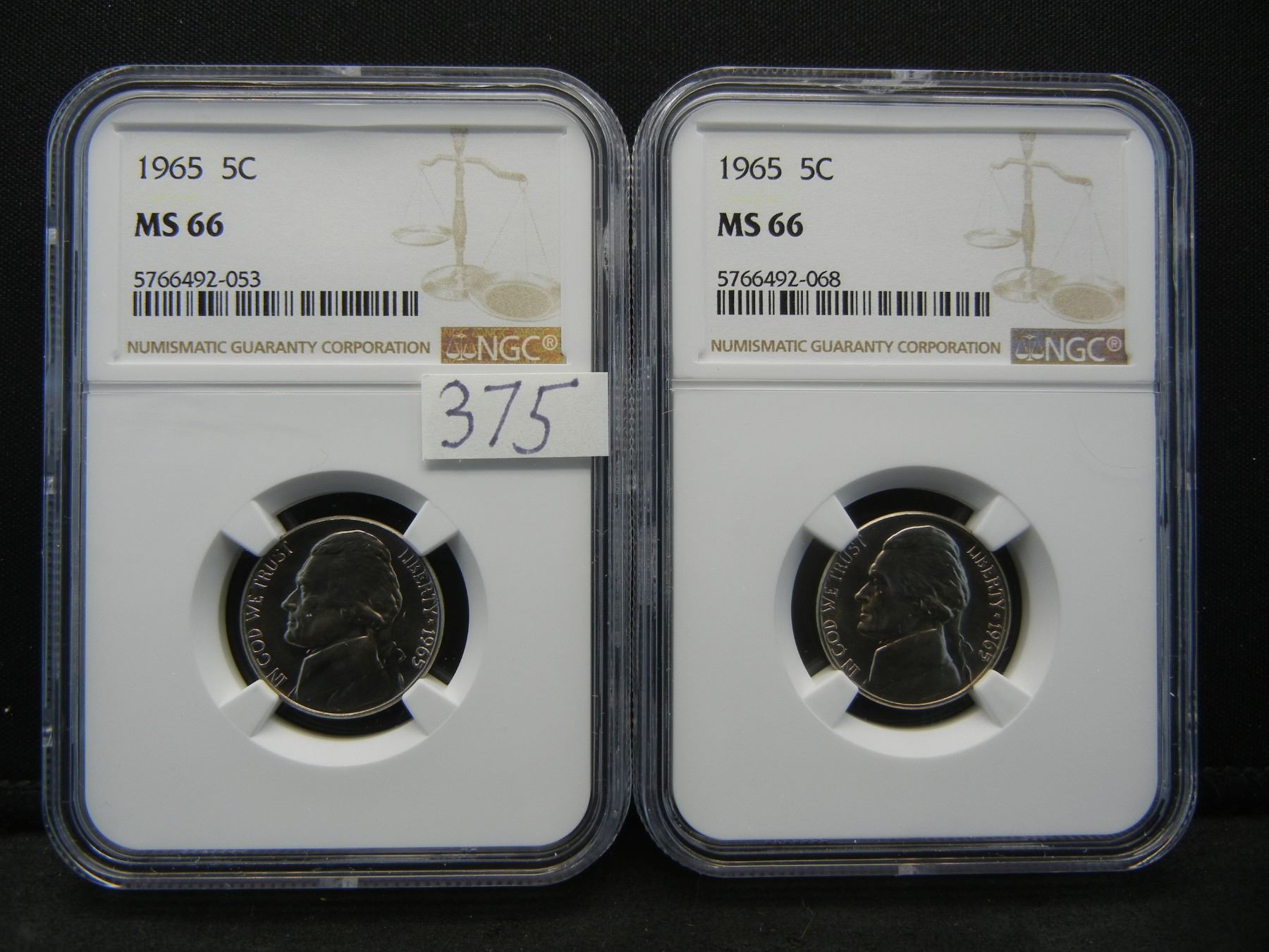 (2) 1965 Jefferson Nickels NGC MS66 NGC Price Guide For the Pair is $120