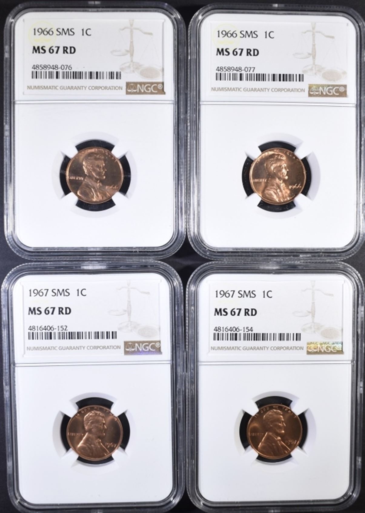 2-1966 & 2-1967 SMS LINCOLN CENTS, NGC MS-67 RED