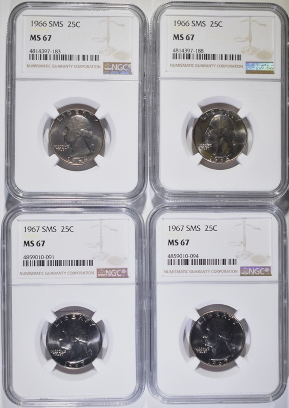2-1966 & 2-1967 SMS WASHINGTON QUARTERS, NGC MS-67