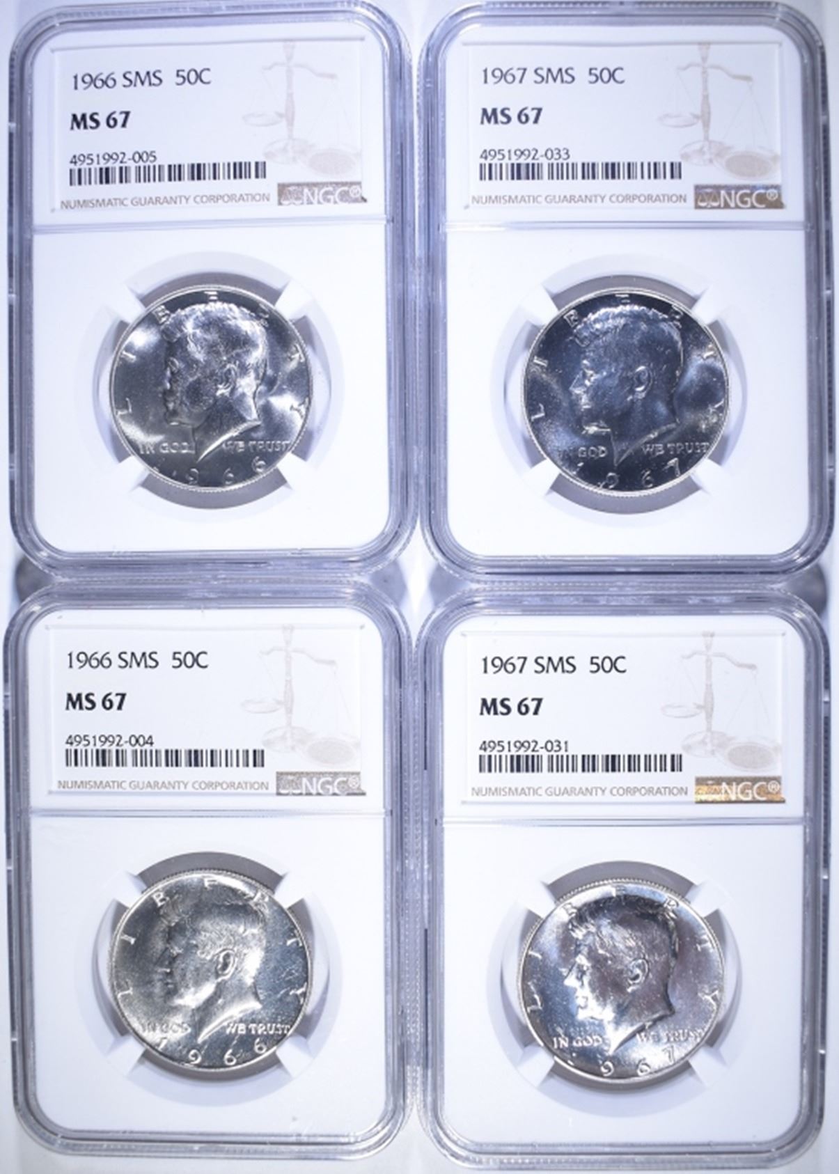 (2) 1966 SMS, (2) 1967 SMS KENNEDY HALVES