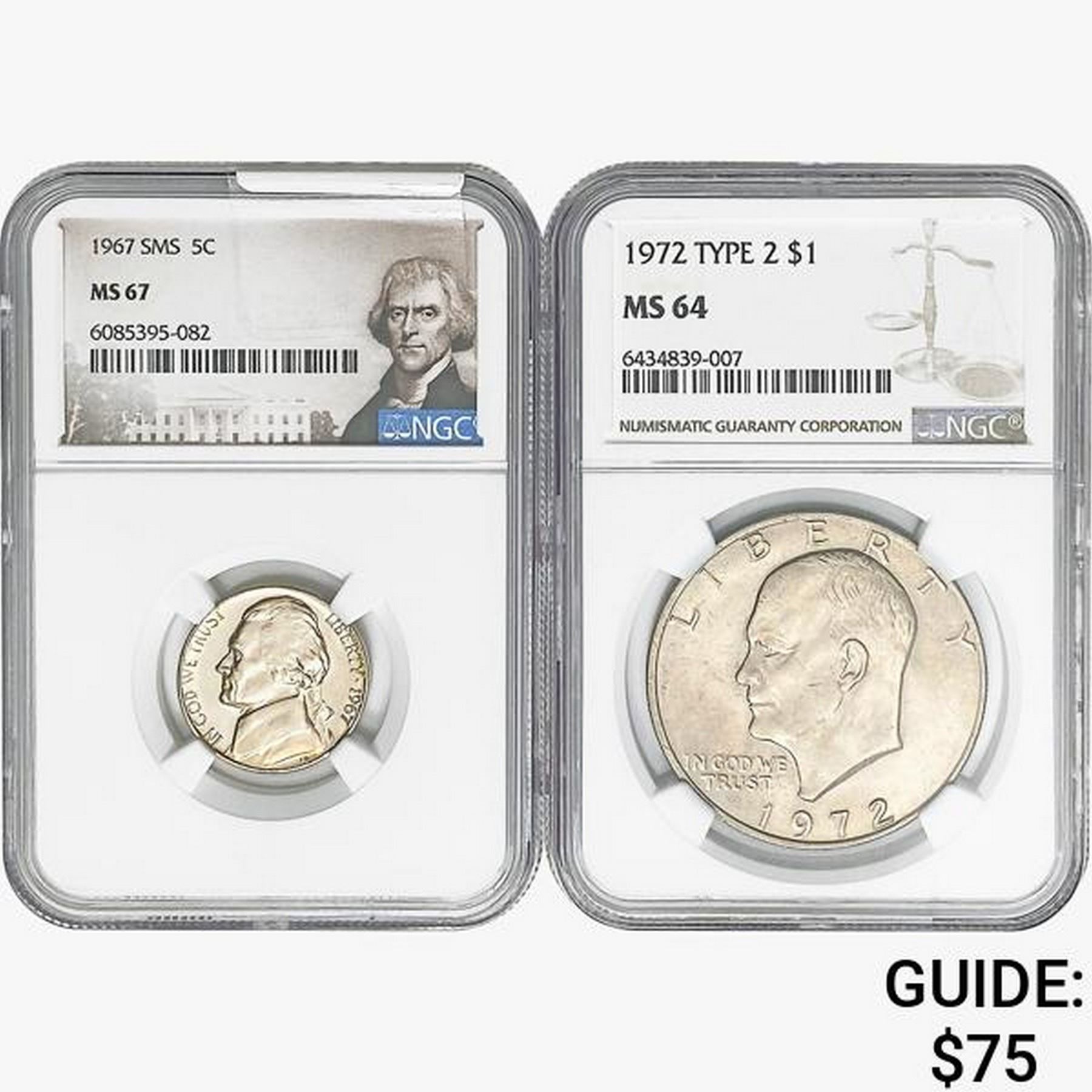 [2] 1967&1972 1 5C, 1 $1 NGC MS64/67