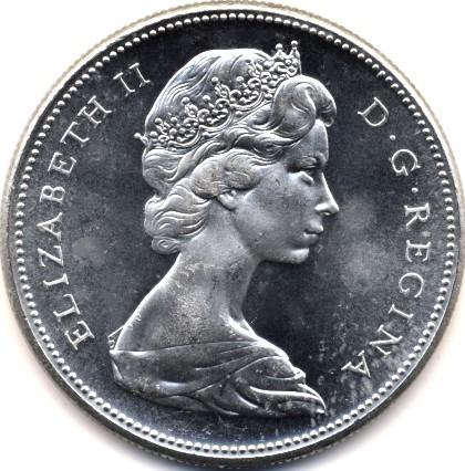 Elizabeth II Subject: Confederation Centennial Obv.: Young bust right Obv. Des.: Arnold Machin