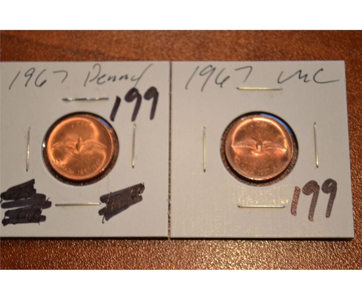 (2) 1967 Canada 1-Cent BU