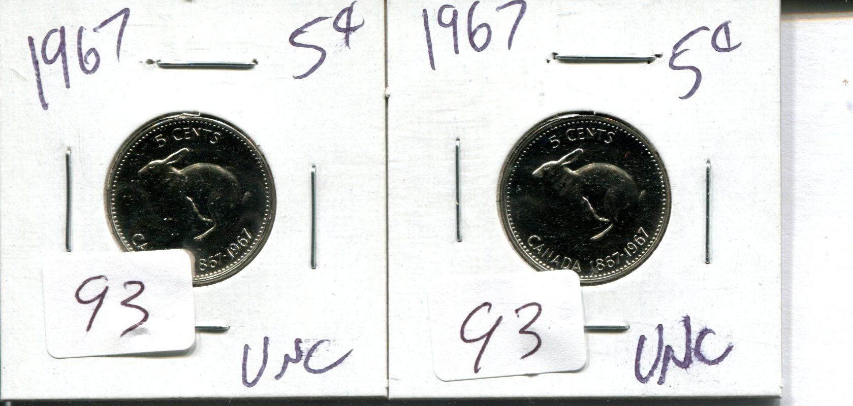 2-1967 Centennial 5 cent rabbit UNC