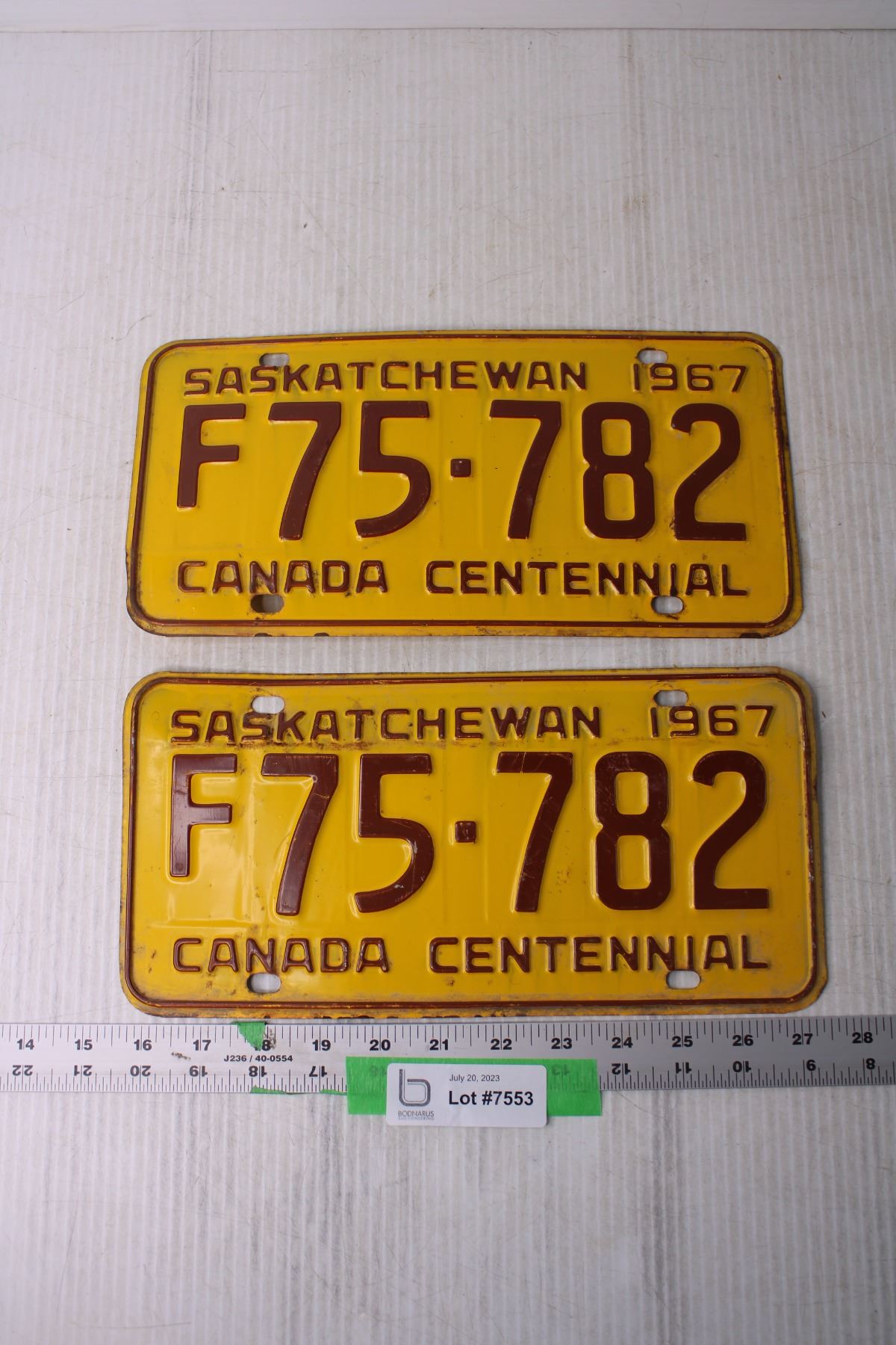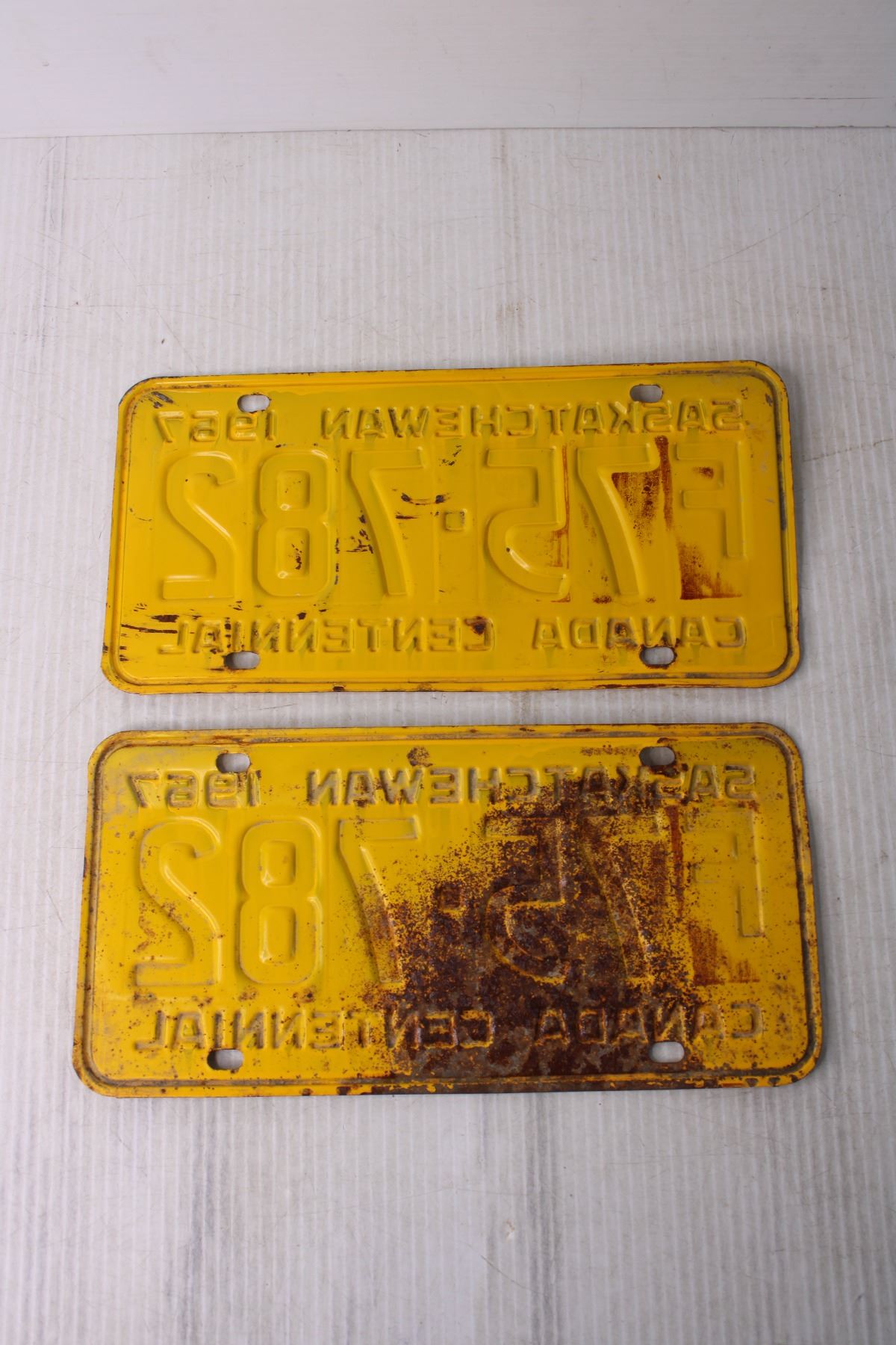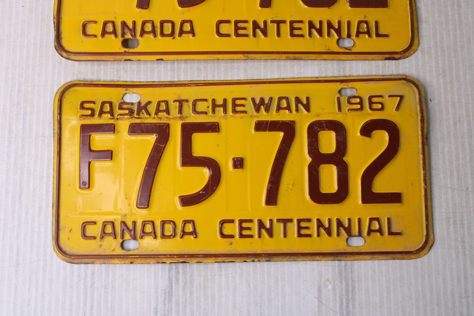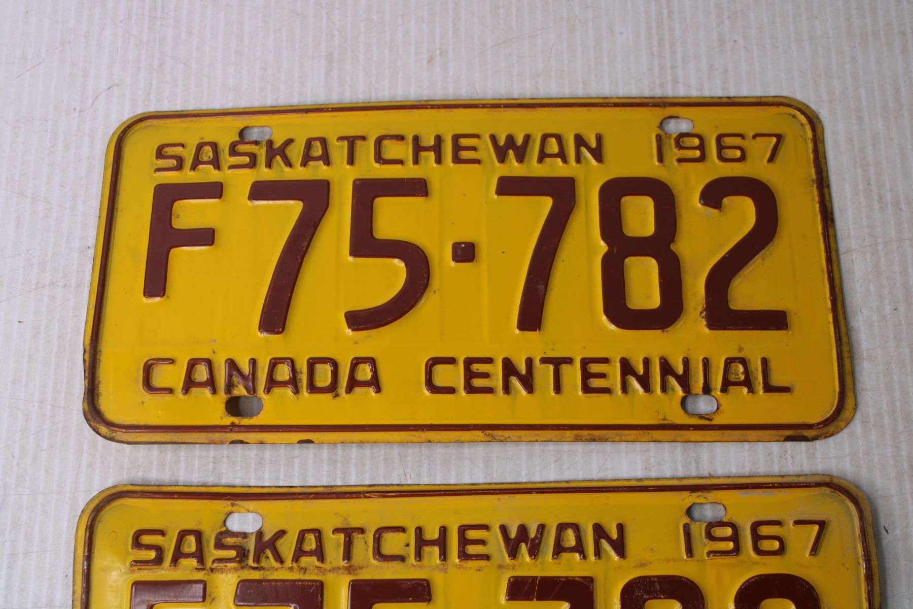 (2) 1967 Saskatchewan License Plates