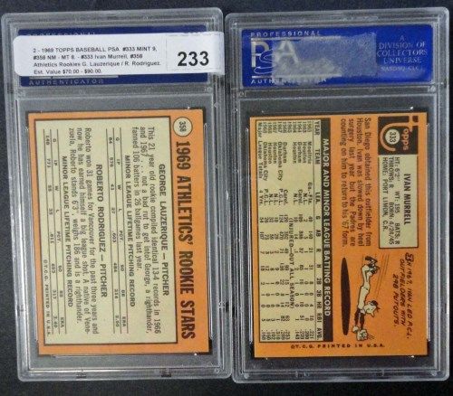 2 - 1969 TOPPS BASEBALL PSA #333 MINT 9, #358 NM - MT 8.