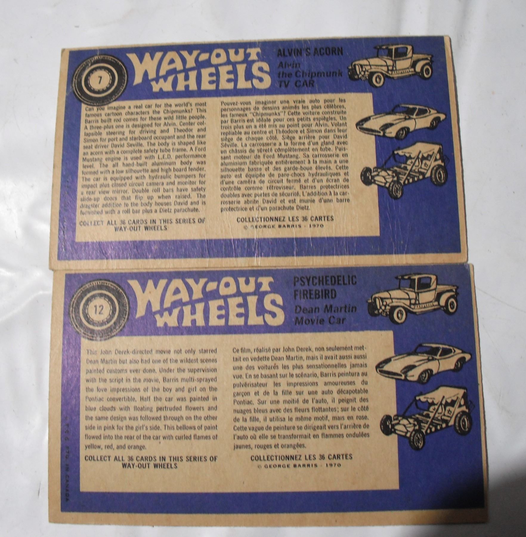 2 1970's Hot Wheels Way Out Wheels Cards