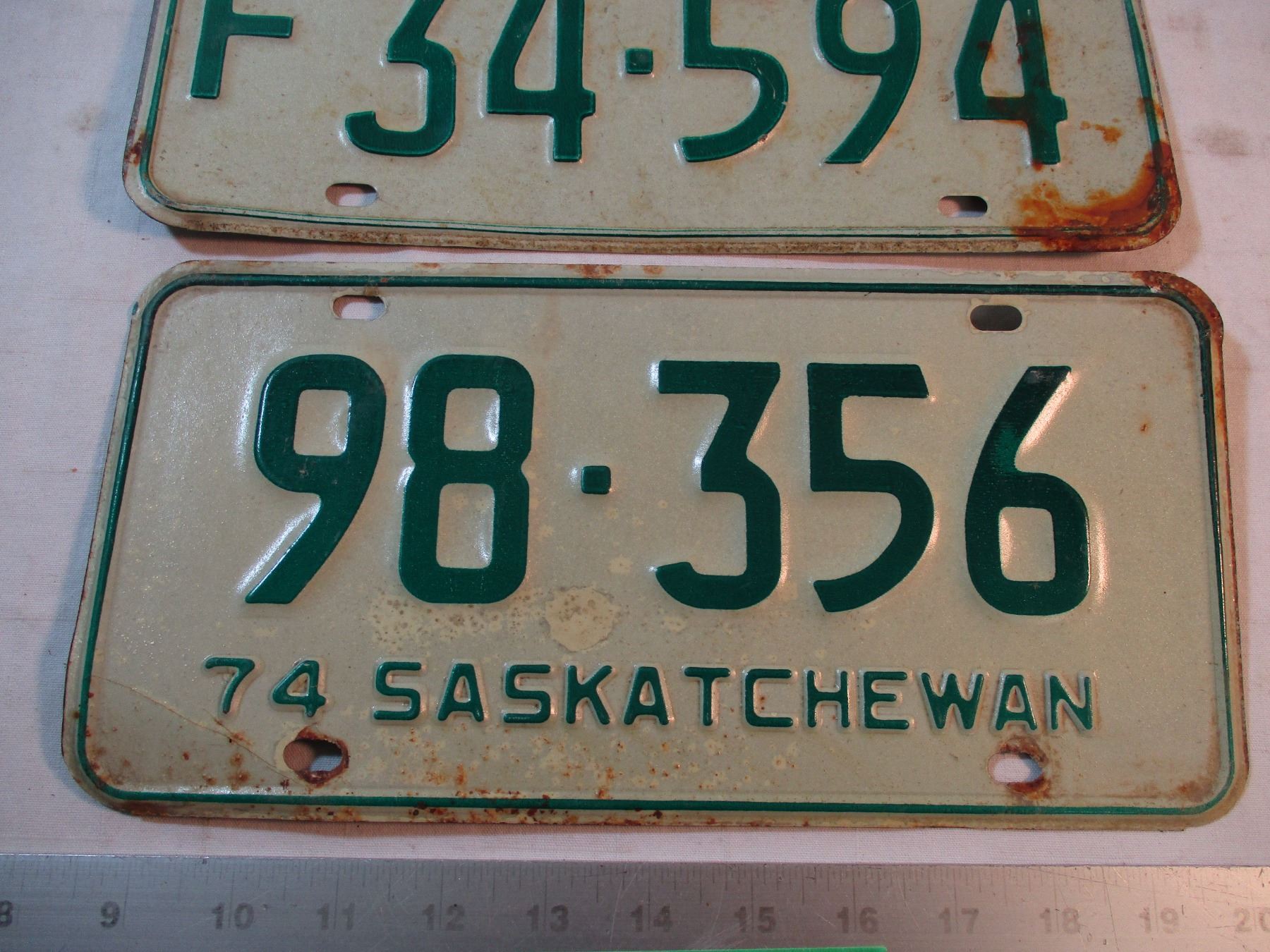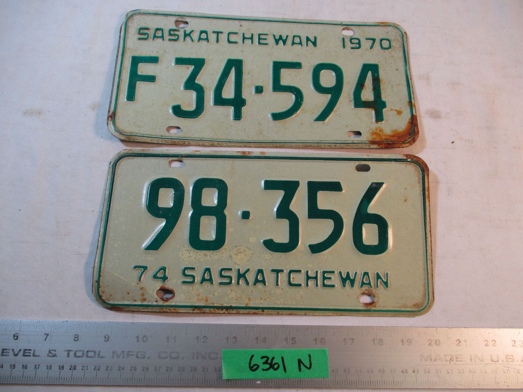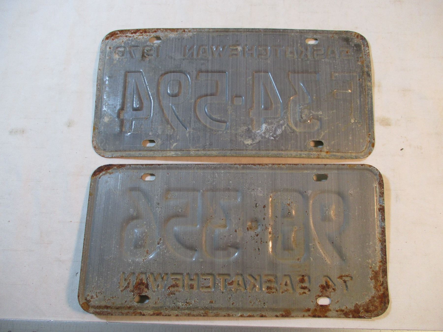 (2) 1970's Saskatchewan License Plates