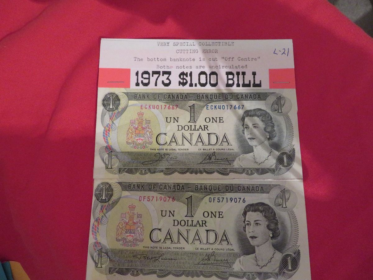 2 - 1973 $1.00 banknotes – unc one is cut off centre 'unique collectable'