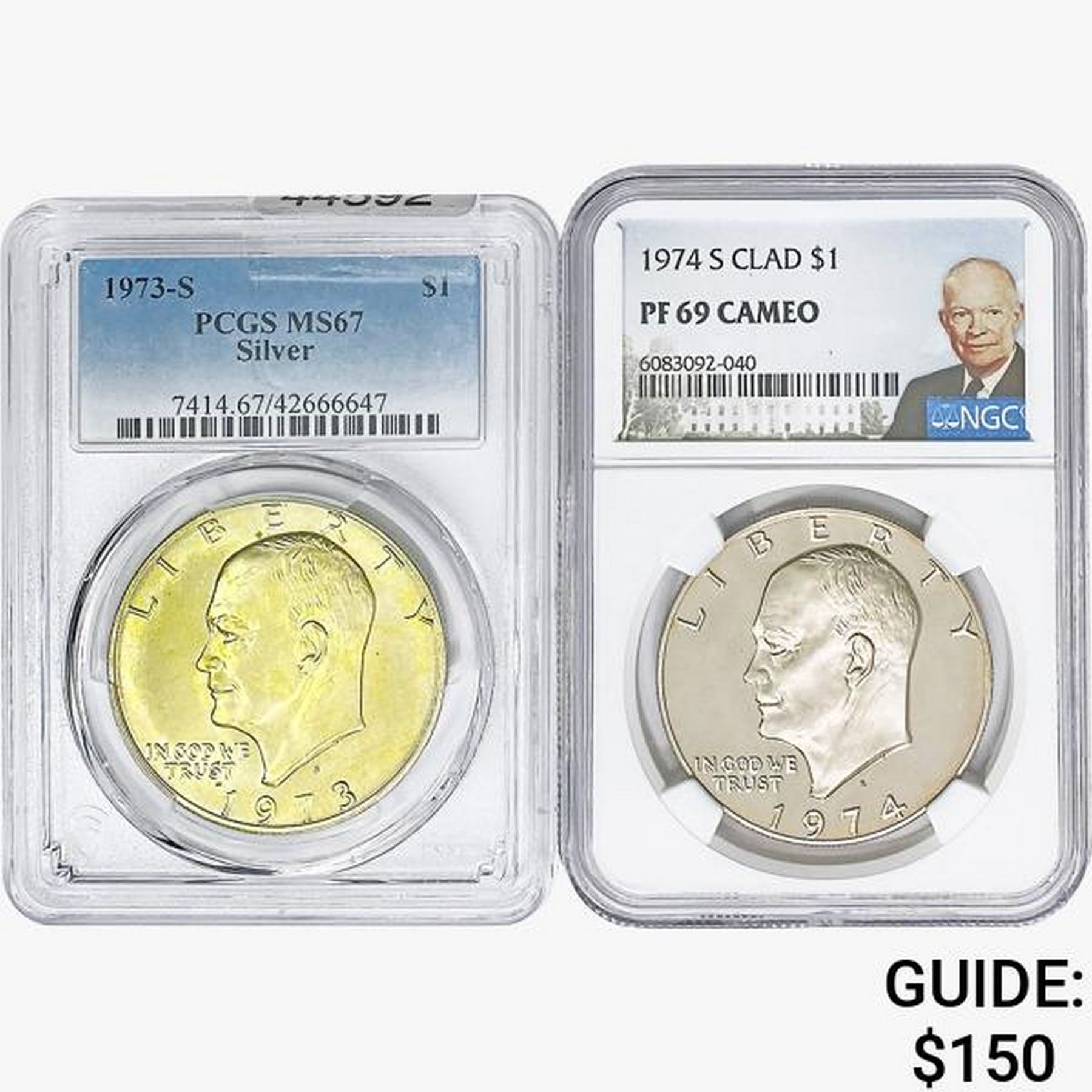 [2] 1973-1974 Eisenhower Dollar NGC/PCGS MS/PF67/69 CAMEO