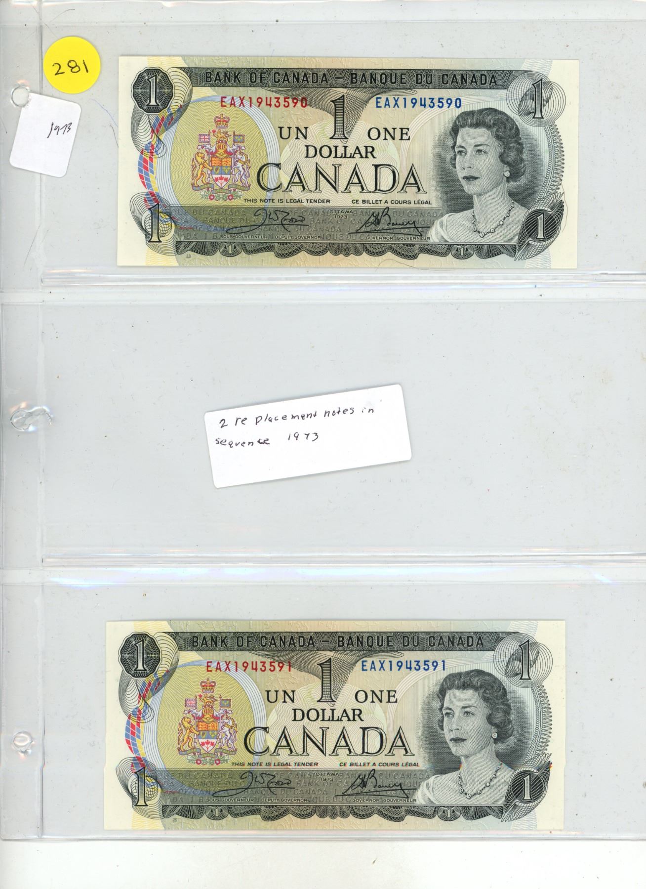 (2) 1973 Canadian One Dollar Replacement Notes in Sequence.