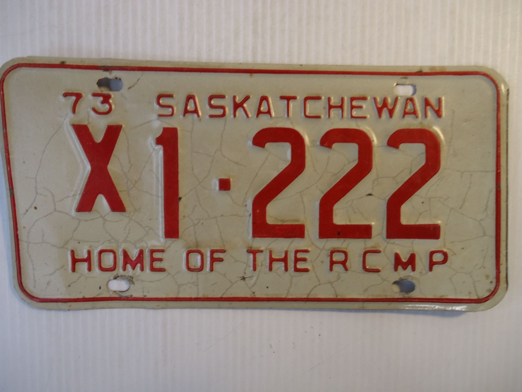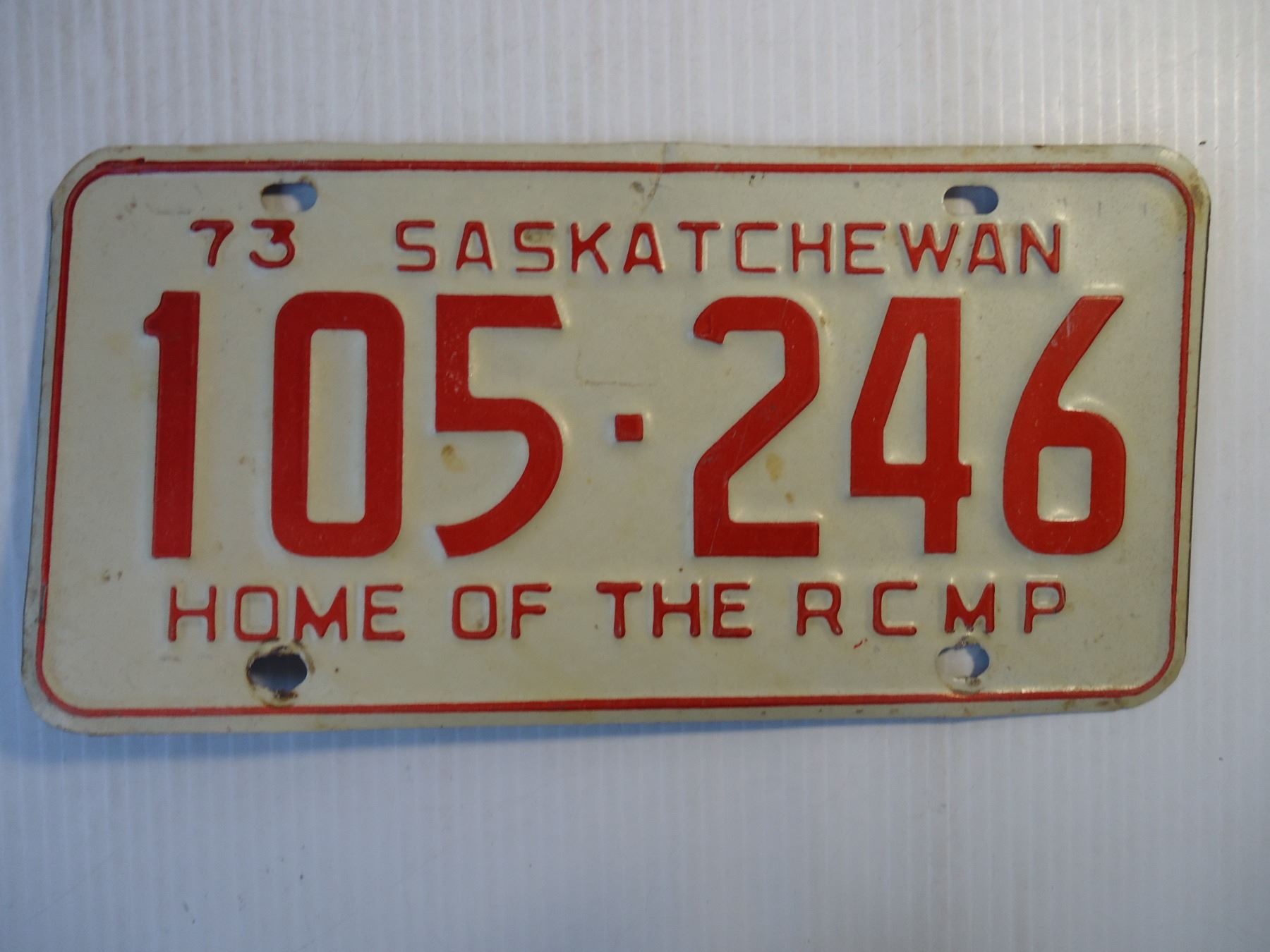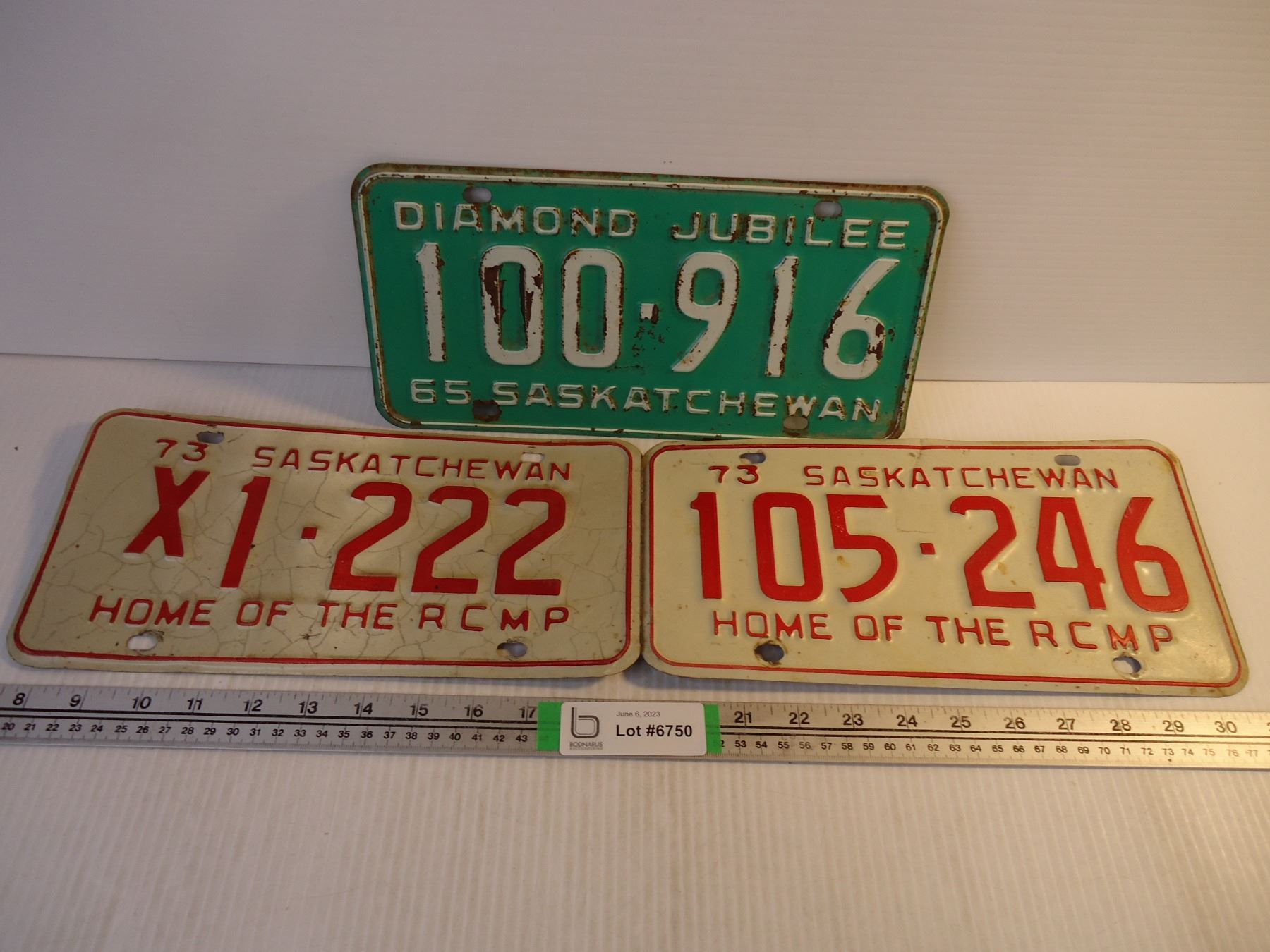 (2) 1973 Saskatchewan License Plates and (1) 1965 Sask. License Plate