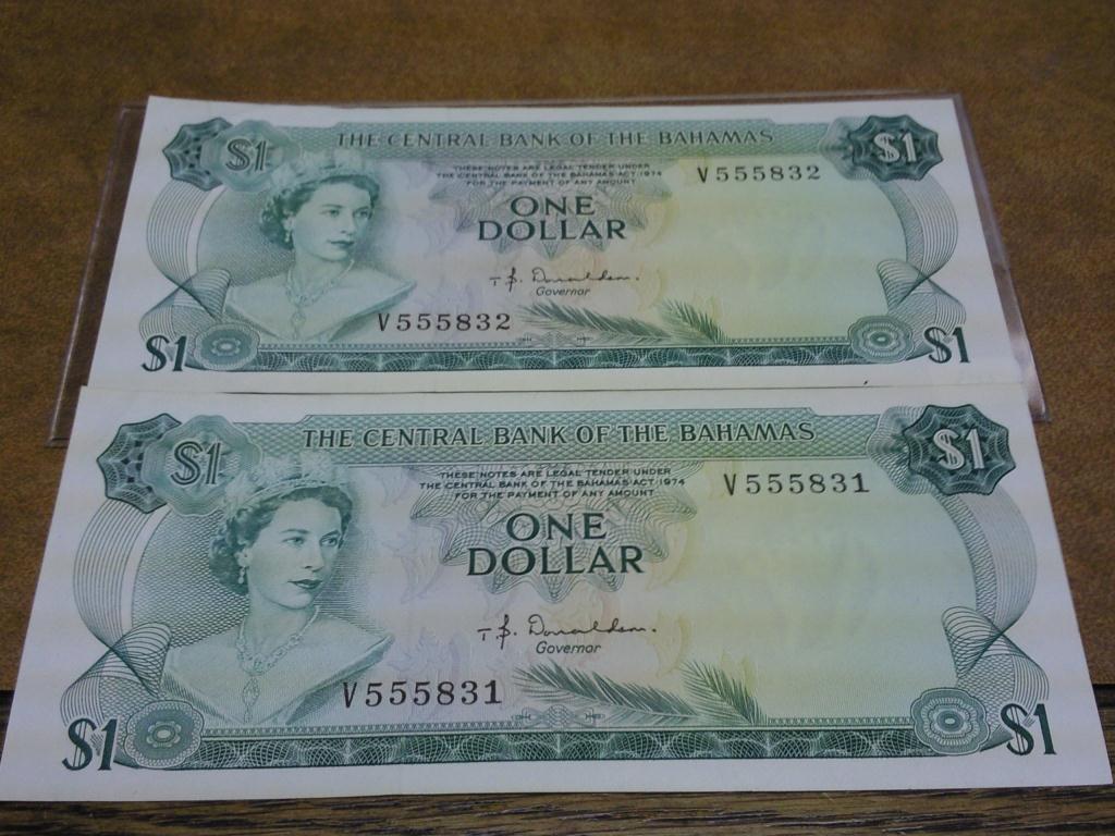2-1974 BAHAMAS DOLLARS (CONSECUTIVE SERIAL #'S)CRISP UNCIRCULATED
