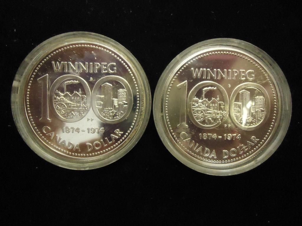 2-1974 CANADA WINNIPEG $'S (PF LIKE) .75 OZ. ASW