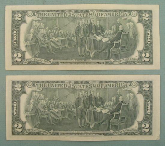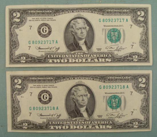(2) 1976 $2 Two Dollar Notes, with consecutive serial numbers
