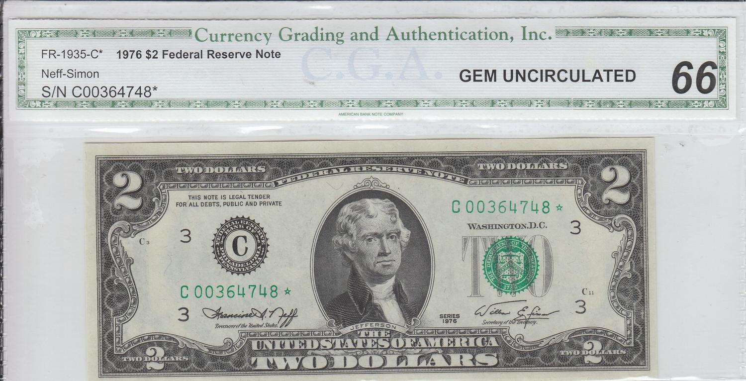 $2 1976 STAR GEM 66 CGA STAR NOTE