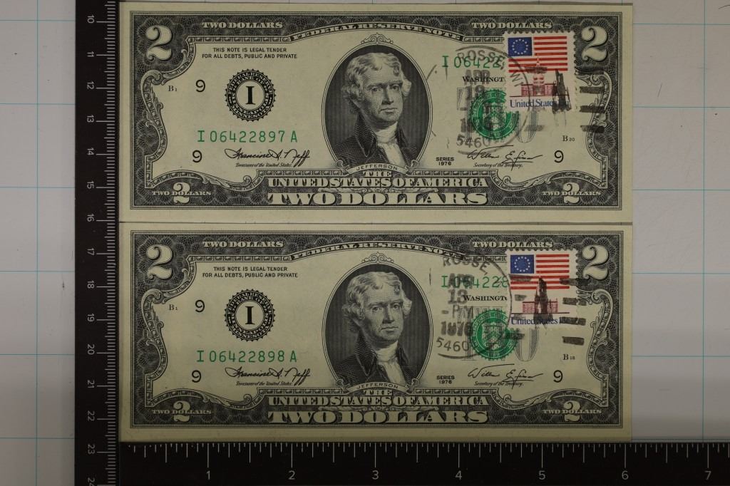 13 CENT US CANCELLED STAMP, AND WITH CONSECUTIVE SERIAL NUMBERS