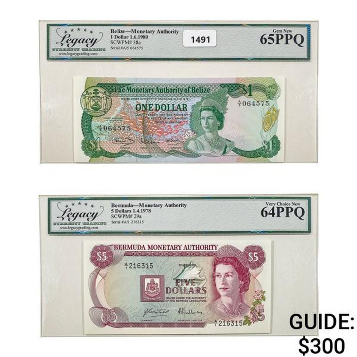[2] 1978&1980 Belize/Bermuda Banknote Currency Legacy