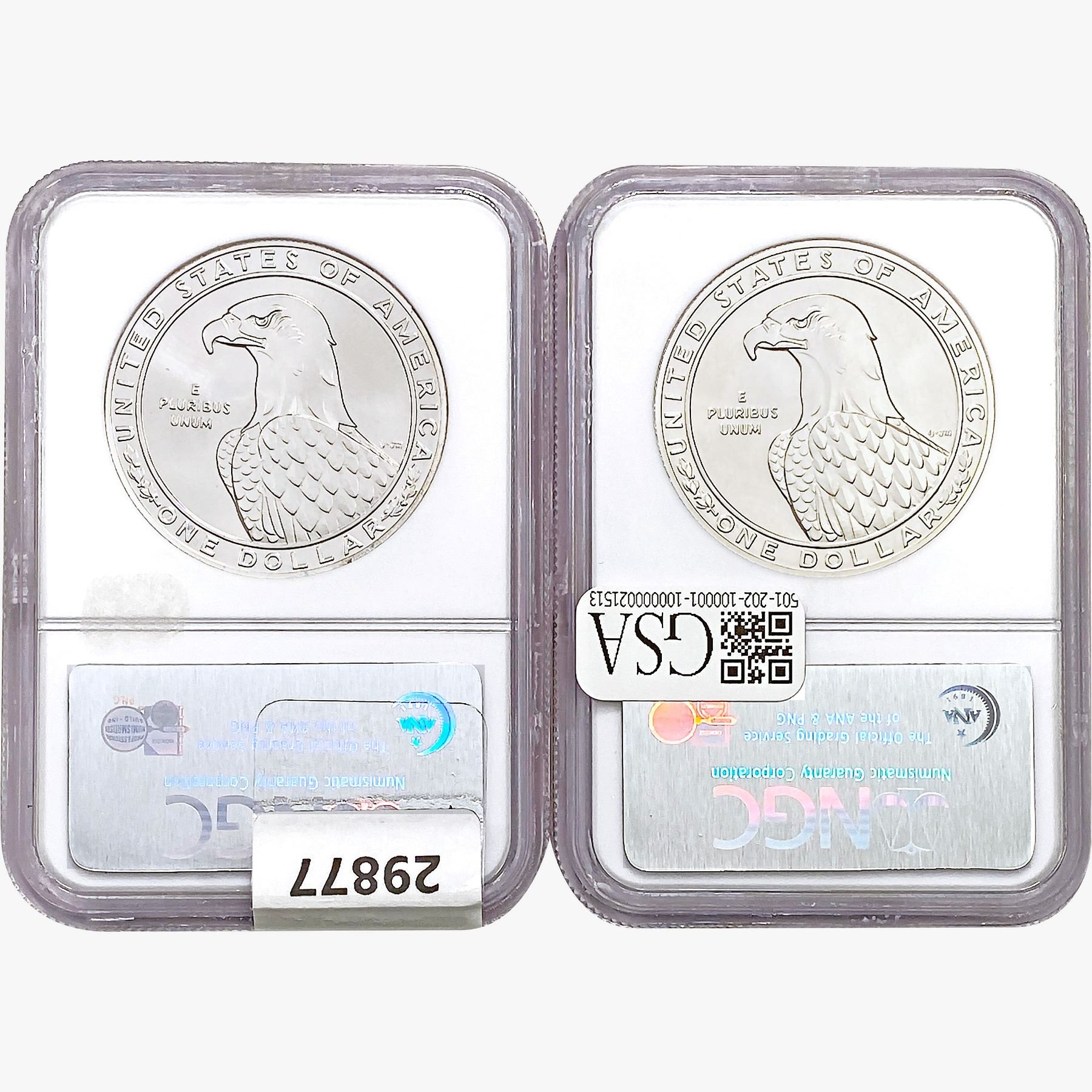 e. Coins sold referencing a third-party grading service are sold “AS IS” without any express or implied warranty, except for a guarantee by GSA that they are genuine. Removal or alteration of the holder, voids all of Bidder’s claims concerning that Product. Certain warranties may be available from the grading services and Bidders are referred to them for further details: Numismatic Guaranty Corporation (NGC), PO Box 4776, Sarasota, FL 34230, www.ngccoin.com/services/writtenguarantee.asp; Professional Coin Grading Services (PCGS), PO Box 9458, Newport Beach, CA 92658, www.pcgs.com/guarantee.html; ANACS, 6555 S. Kenton St., Ste. 303, Englewood, CO 80111; and Independent Coin Grading Co. (ICG), 7901 East Bellview, Ave., Suite 50, Englewood, CO 80111.