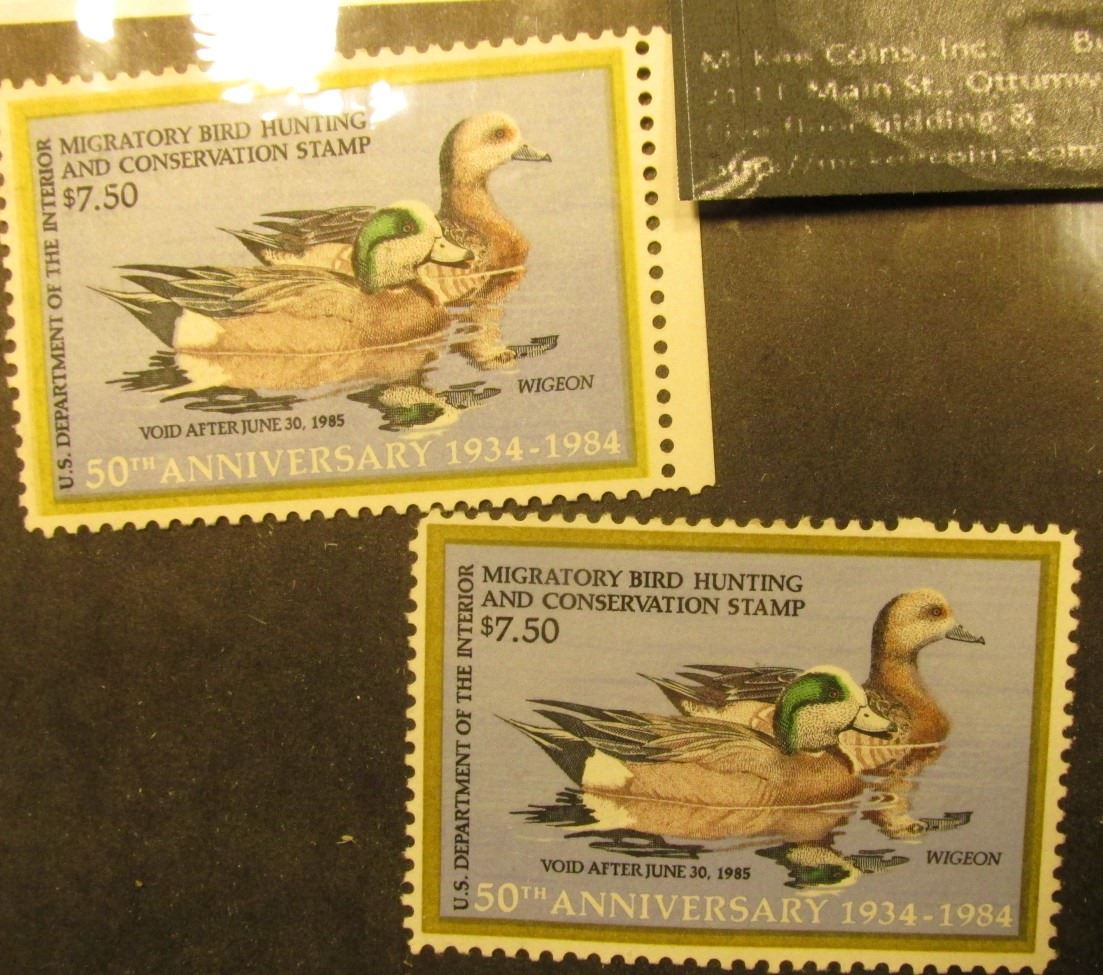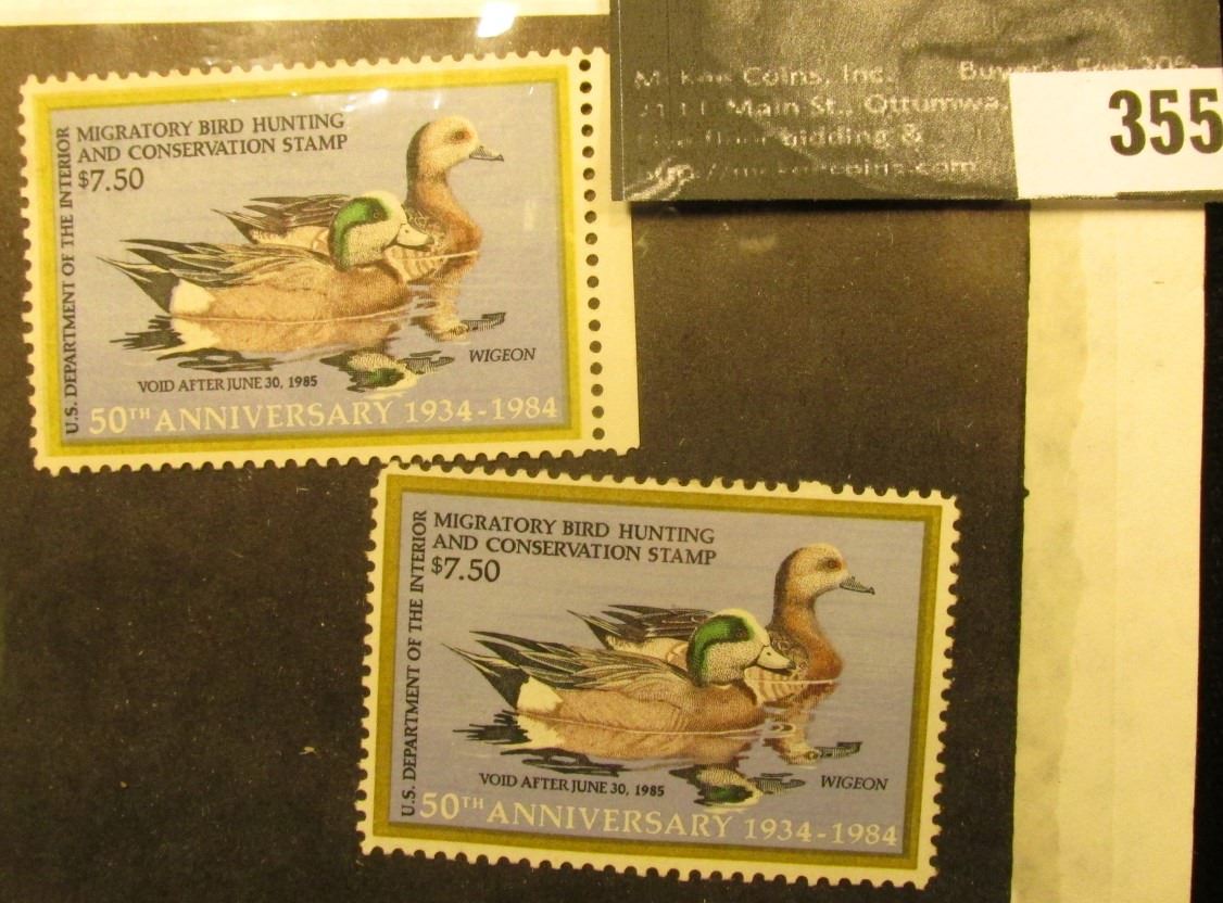 (2) 1984 RW51 Federal Migratory Waterfowl $7.50 Stamp, Unsigned, and unused. DG.