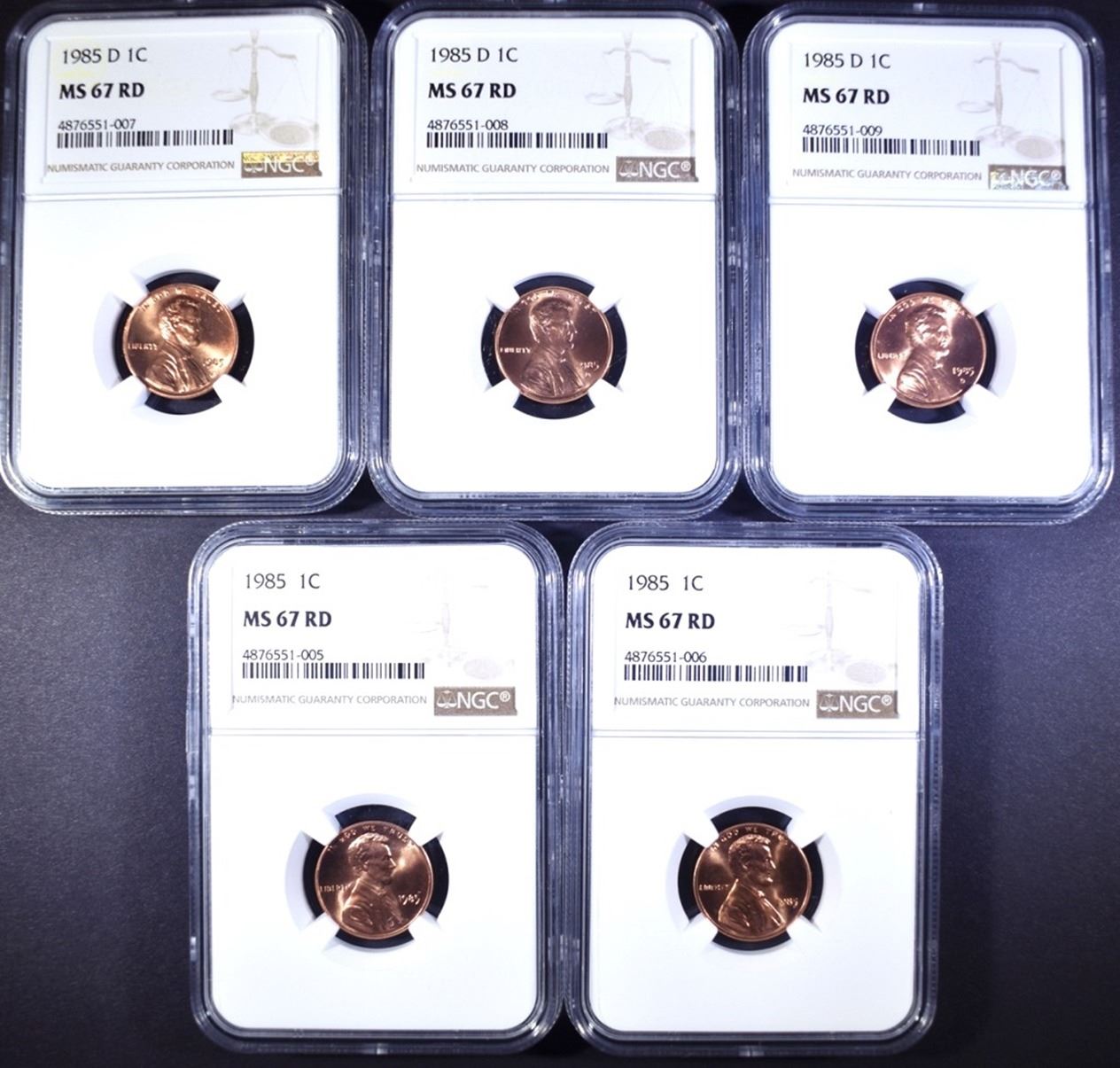 2-1985 & 3-85-D LINCOLN CENTS, NGC MS-67 RED
