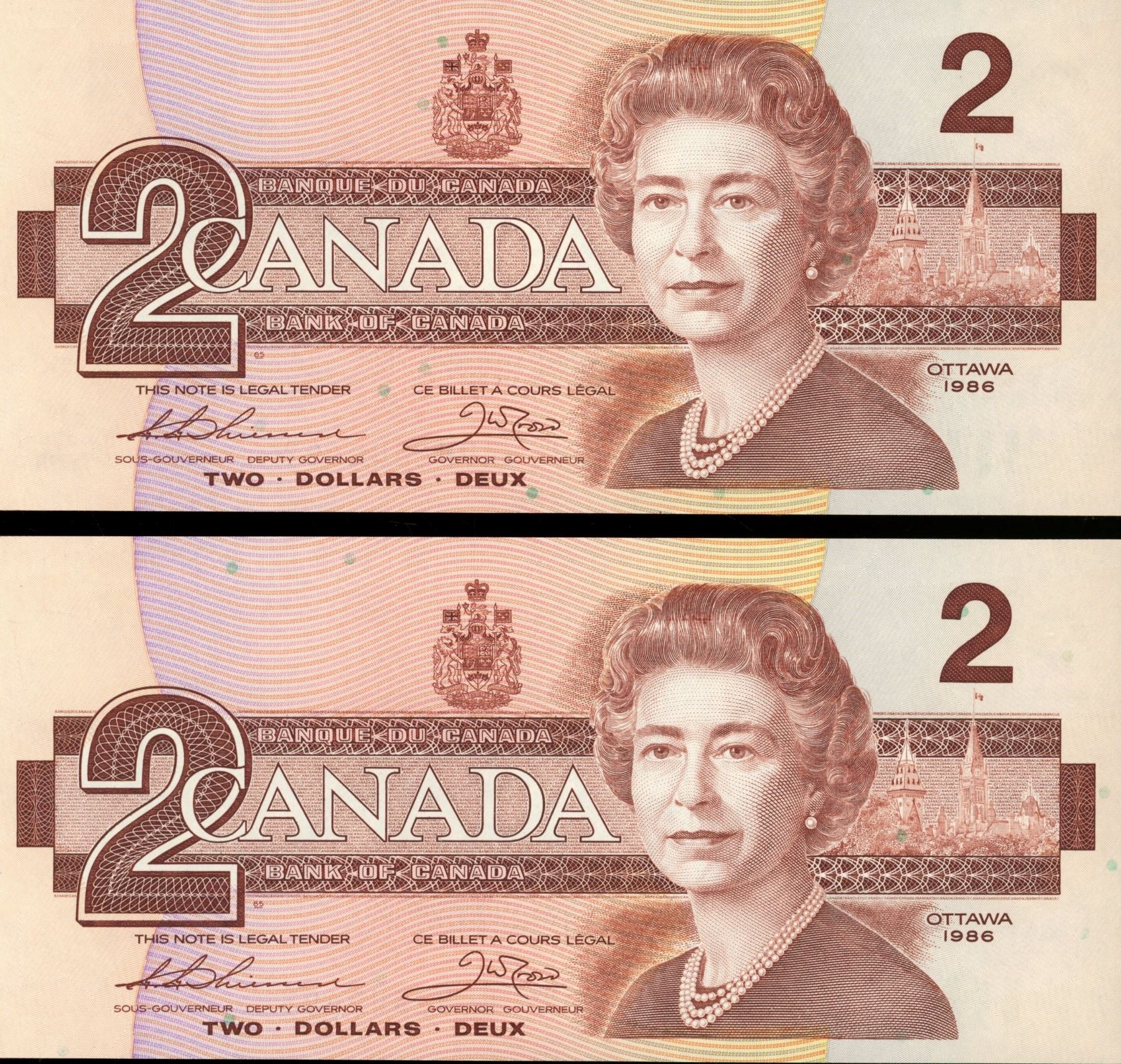 2 1986 $2 Bill uncirc. Sequence #