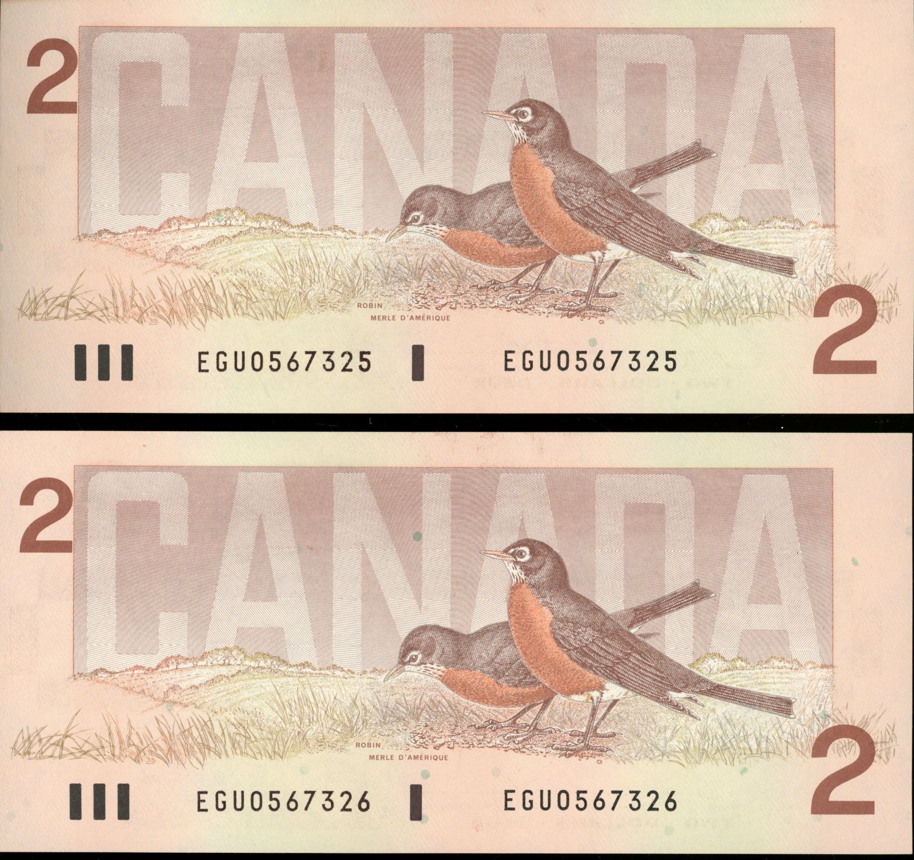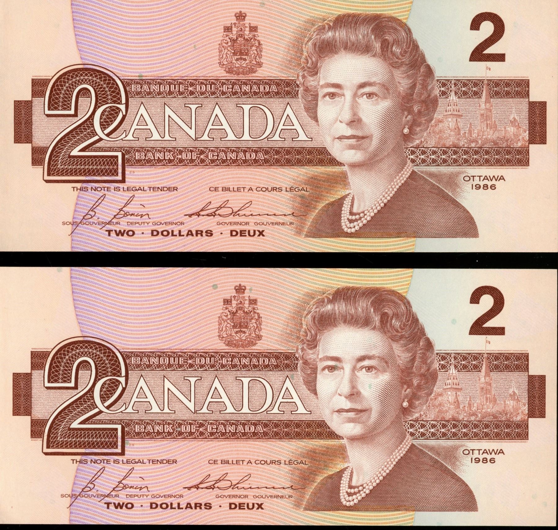 2 1986 $2 Bill uncirc. Sequence #
