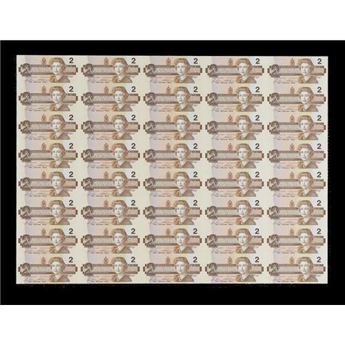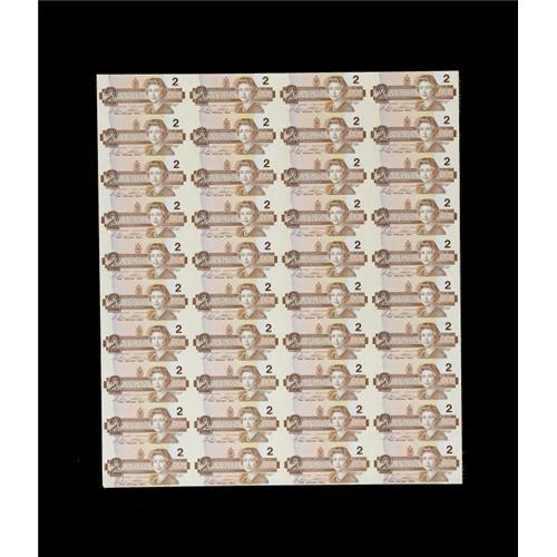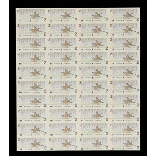 <B>$2 1986 Uncut Sheets of 40. Seven Examples. About Uncirculated.</B></I><BR>The following $2 1986 sheets are included in this lot BC-55b prefix BBU; BC-55bA BBX (replacement); BC-55b-i prefix EBA; BC-55bA-i prefix EBX (replacement); BC-55c prefixes CBJ; CBK; and BC-55c-i prefix EGT.<BR><I>From The Collection of Richard A. Beck</B></I> <BR><BR><B>Important notice