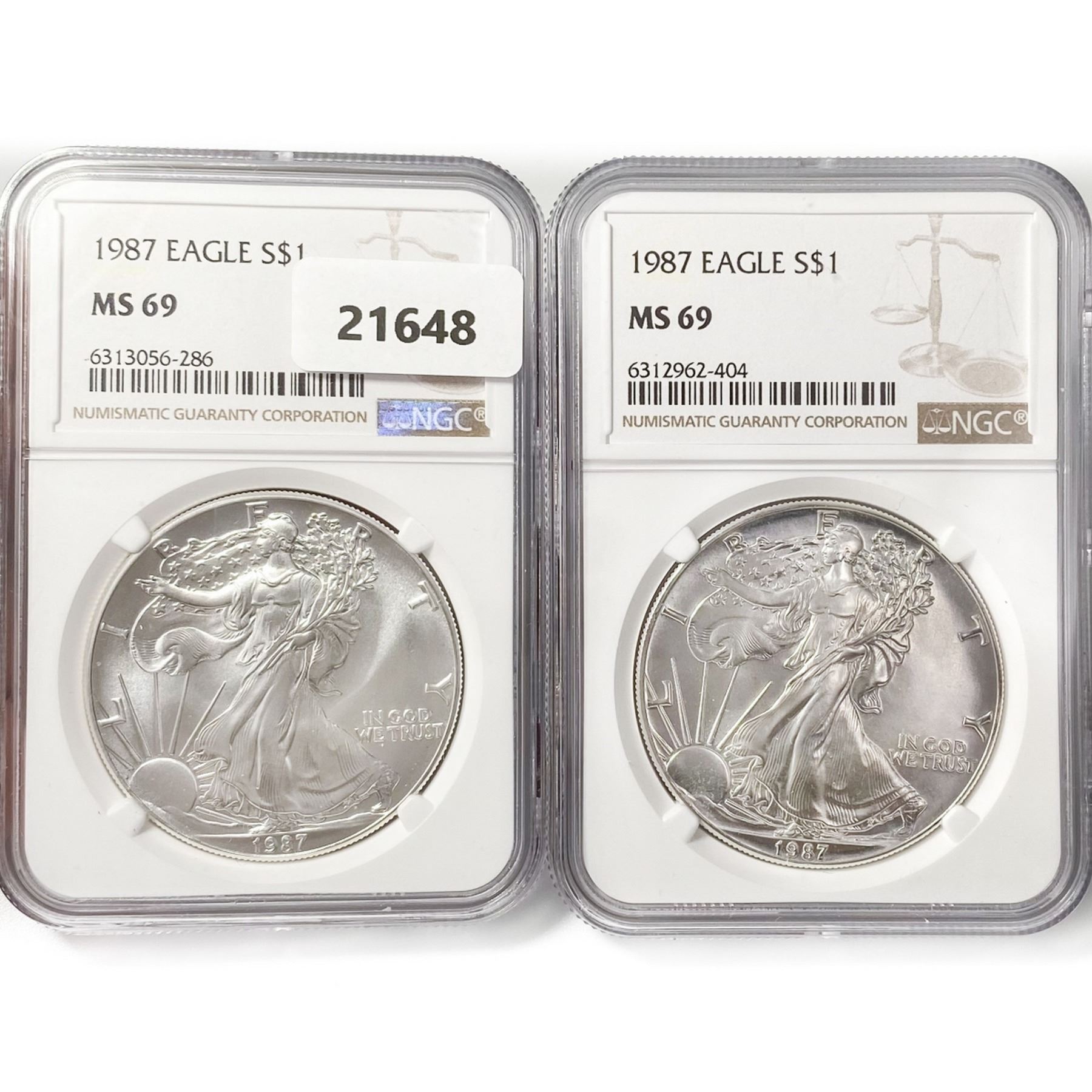 (2) 1987 American 1oz Silver Eagles NGC MS69