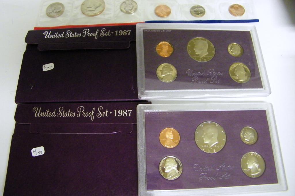 (2) 1987 US Proof Sets & 1987 Unc Set w/D & P