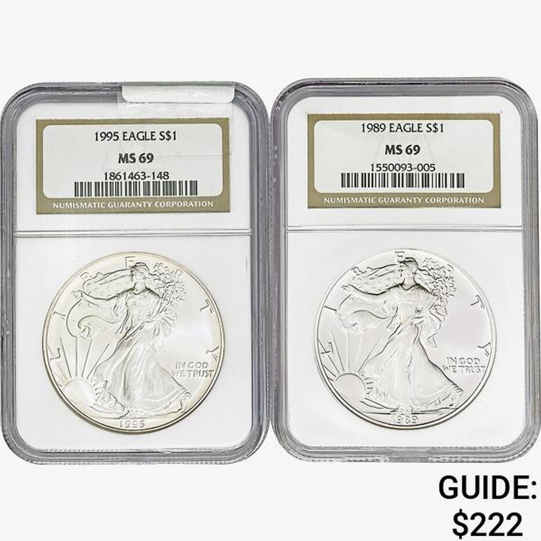 [2] 1989 & 1995 Silver Eagle NGC MS69