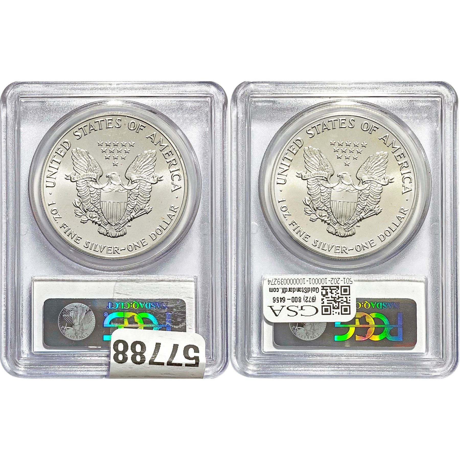 e. Coins sold referencing a third-party grading service are sold “AS IS” without any express or implied warranty, except for a guarantee by GSA that they are genuine. Removal or alteration of the holder, voids all of Bidder’s claims concerning that Product. Certain warranties may be available from the grading services and Bidders are referred to them for further details: Numismatic Guaranty Corporation (NGC), PO Box 4776, Sarasota, FL 34230, www.ngccoin.com/services/writtenguarantee.asp; Professional Coin Grading Services (PCGS), PO Box 9458, Newport Beach, CA 92658, www.pcgs.com/guarantee.html; ANACS, 6555 S. Kenton St., Ste. 303, Englewood, CO 80111; and Independent Coin Grading Co. (ICG), 7901 East Bellview, Ave., Suite 50, Englewood, CO 80111.