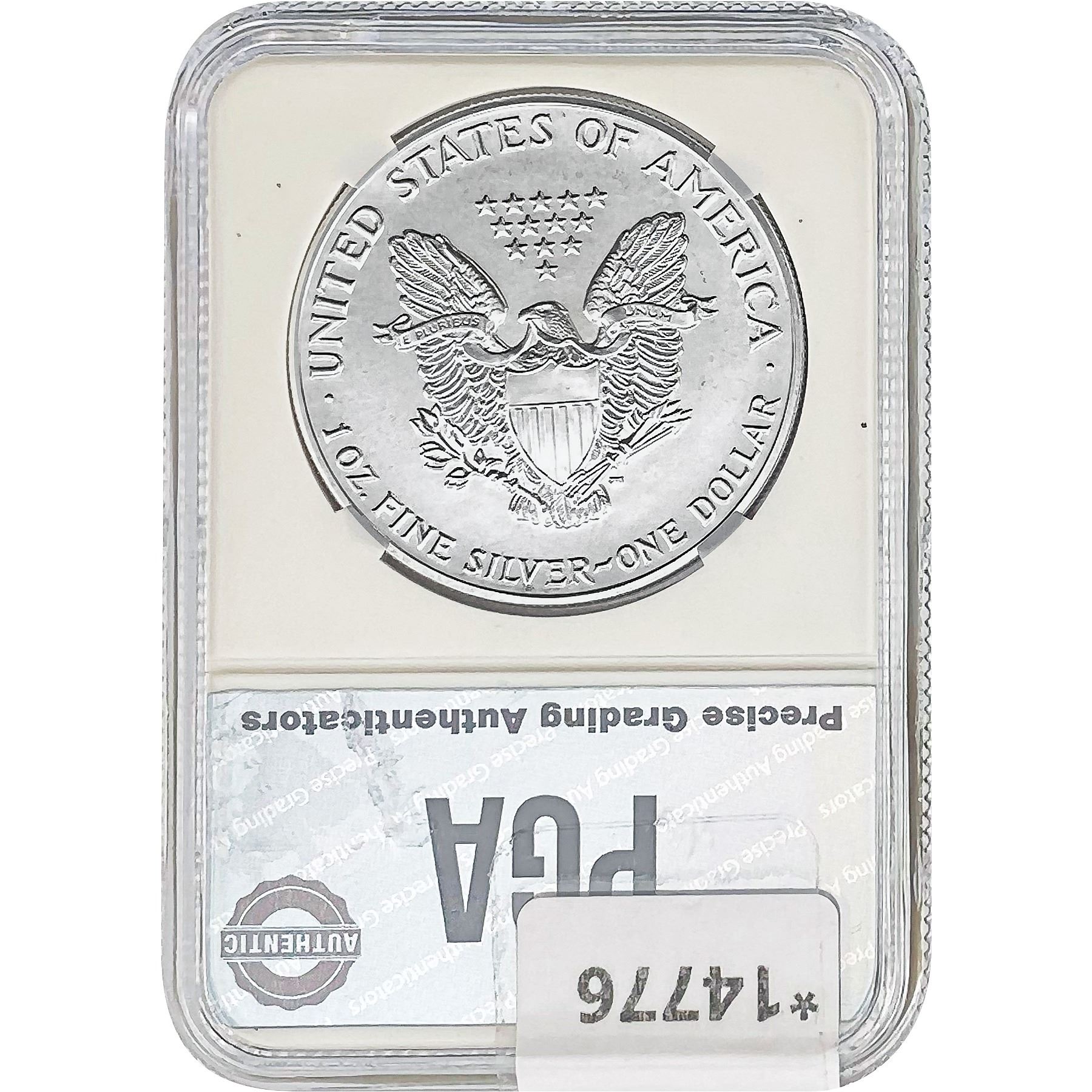 COINS AND CURRENCY LISTED IN GSA’S CATALOG AS GRADED AND ENCAPSULATED BY PCGS, NGC, ANACS, ICG, PCGS CURRENCY, PMG, PCGS BANKNOTE GRADING, CMC OR ANY OTHER THIRD-PARTY GRADING SERVICE ARE LIKEWISE SOLD “AS-IS” EXCEPT AS EXPRESSLY SET FORTH HEREIN. ALL THIRD-PARTY GRADING SERVICE GUARANTEES, INCLUDING AUTHENTICITY, ARE THE SOLE RESPONSIBILITY OF THE THIRD-PARTY GRADING SERVICE AND NOT WARRANTIES OR GUARANTEES OF GSA. BIDDERS SHOULD CONTACT THESE THIRD-PARTY GRADING SERVICES DIRECTLY WITH RESPECT TO ANY CLAIMS OR QUESTIONS THEY MAY HAVE CONCERNING THEIR GUARANTEES AND WARRANTIES. BIDDERS ACKNOWLEDGE AND AGREE THAT AUCTIONEER IS NOT BOUND BY OR LIABLE FOR ANY OPINION OR CERTIFICATION BY ANY THIRD-PARTY GRADING SERVICE. REMOVAL OF A PRODUCT FROM ITS PROTECTIVE CASING OR HOLDER OR ALTERATION OF ANY COIN HOLDER WAIVES ALL RIGHTS CONCERNING THE PRODUCT CONTAINED THEREIN.