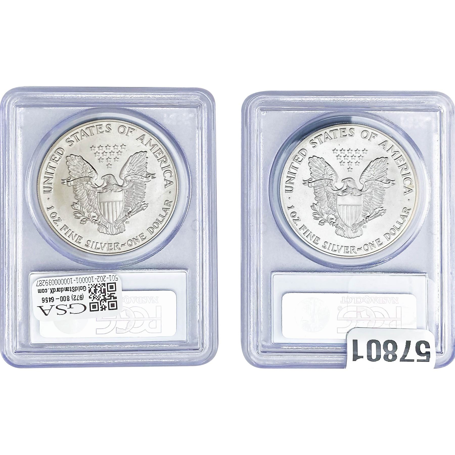e. Coins sold referencing a third-party grading service are sold “AS IS” without any express or implied warranty, except for a guarantee by GSA that they are genuine. Removal or alteration of the holder, voids all of Bidder’s claims concerning that Product. Certain warranties may be available from the grading services and Bidders are referred to them for further details: Numismatic Guaranty Corporation (NGC), PO Box 4776, Sarasota, FL 34230, www.ngccoin.com/services/writtenguarantee.asp; Professional Coin Grading Services (PCGS), PO Box 9458, Newport Beach, CA 92658, www.pcgs.com/guarantee.html; ANACS, 6555 S. Kenton St., Ste. 303, Englewood, CO 80111; and Independent Coin Grading Co. (ICG), 7901 East Bellview, Ave., Suite 50, Englewood, CO 80111.