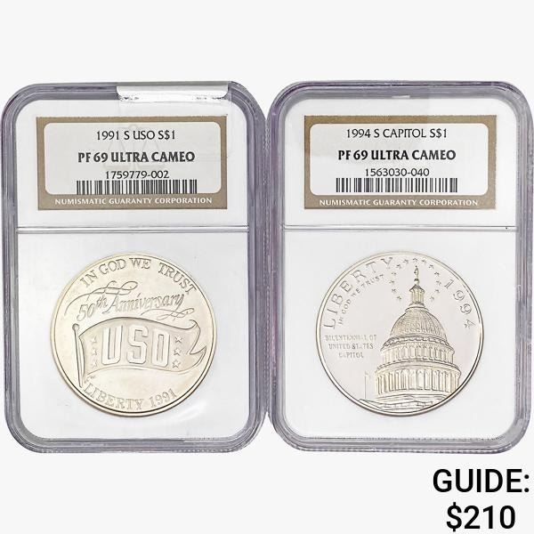[2] 1991 & 1994 S$1 USO/Capitol NGC PF69 ULTRA CAMEO