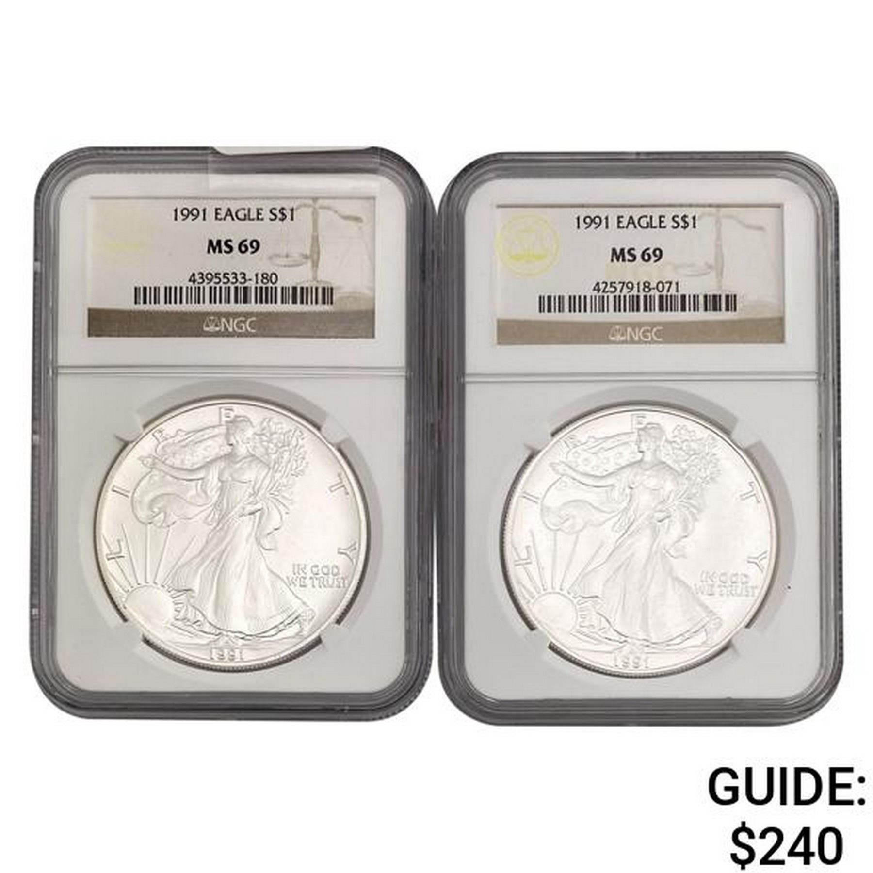 [2] 1991 American Silver Eagle NGC MS69