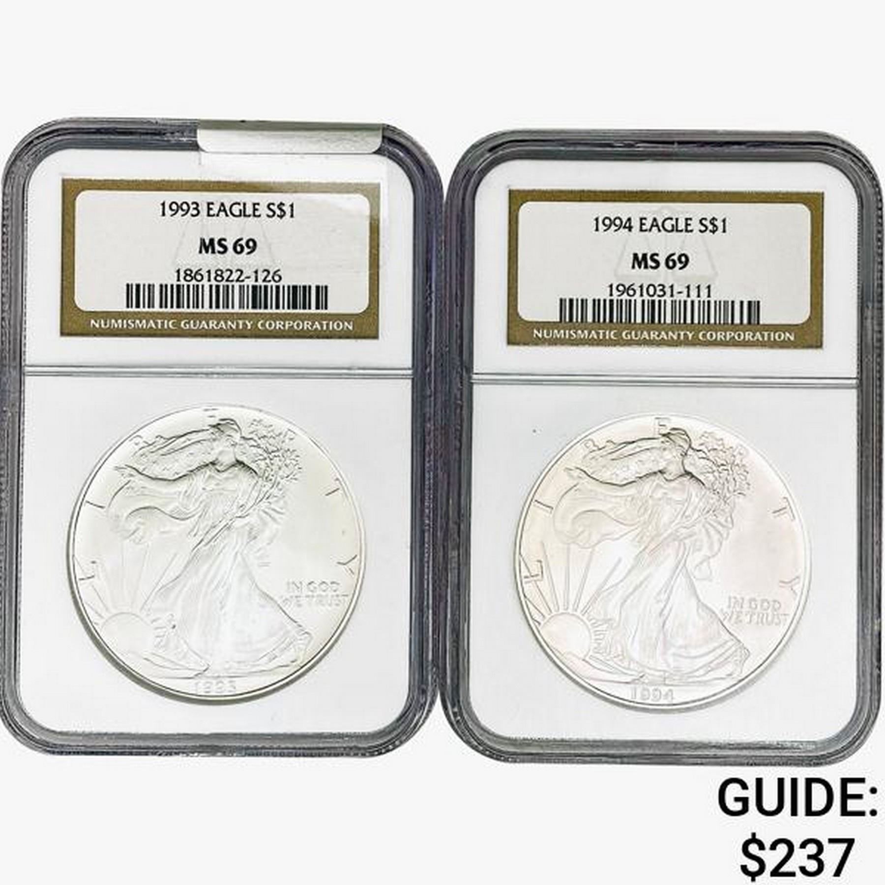 [2] 1993 & 1994 Silver Eagle NGC MS69