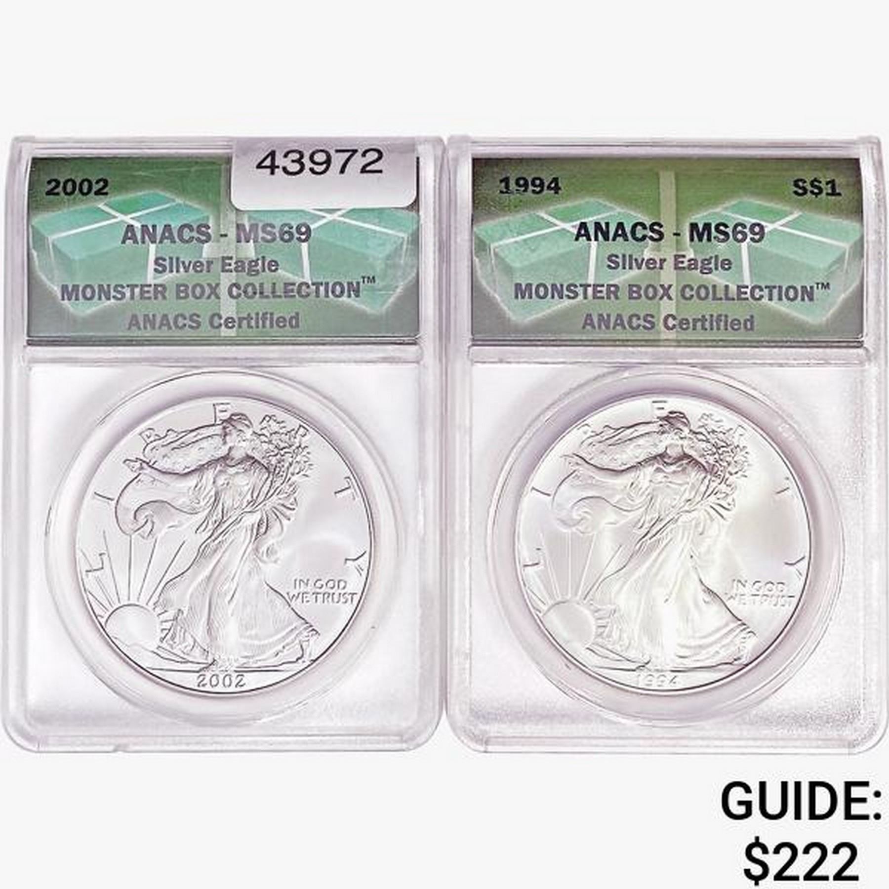 [2]1994 & 2002 Silver Eagle ANACS MS69