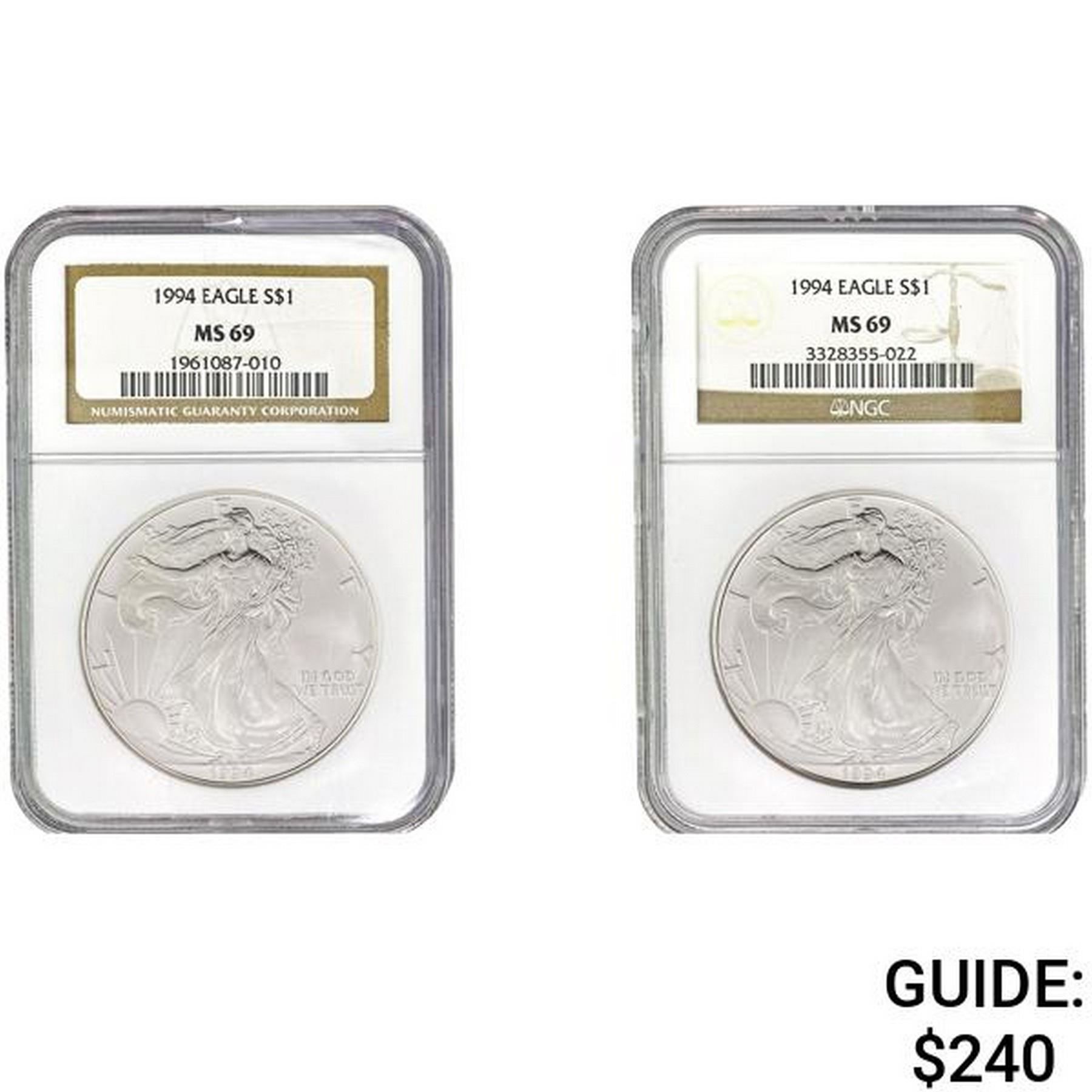 [2] 1994 American Silver Eagle NGC MS69
