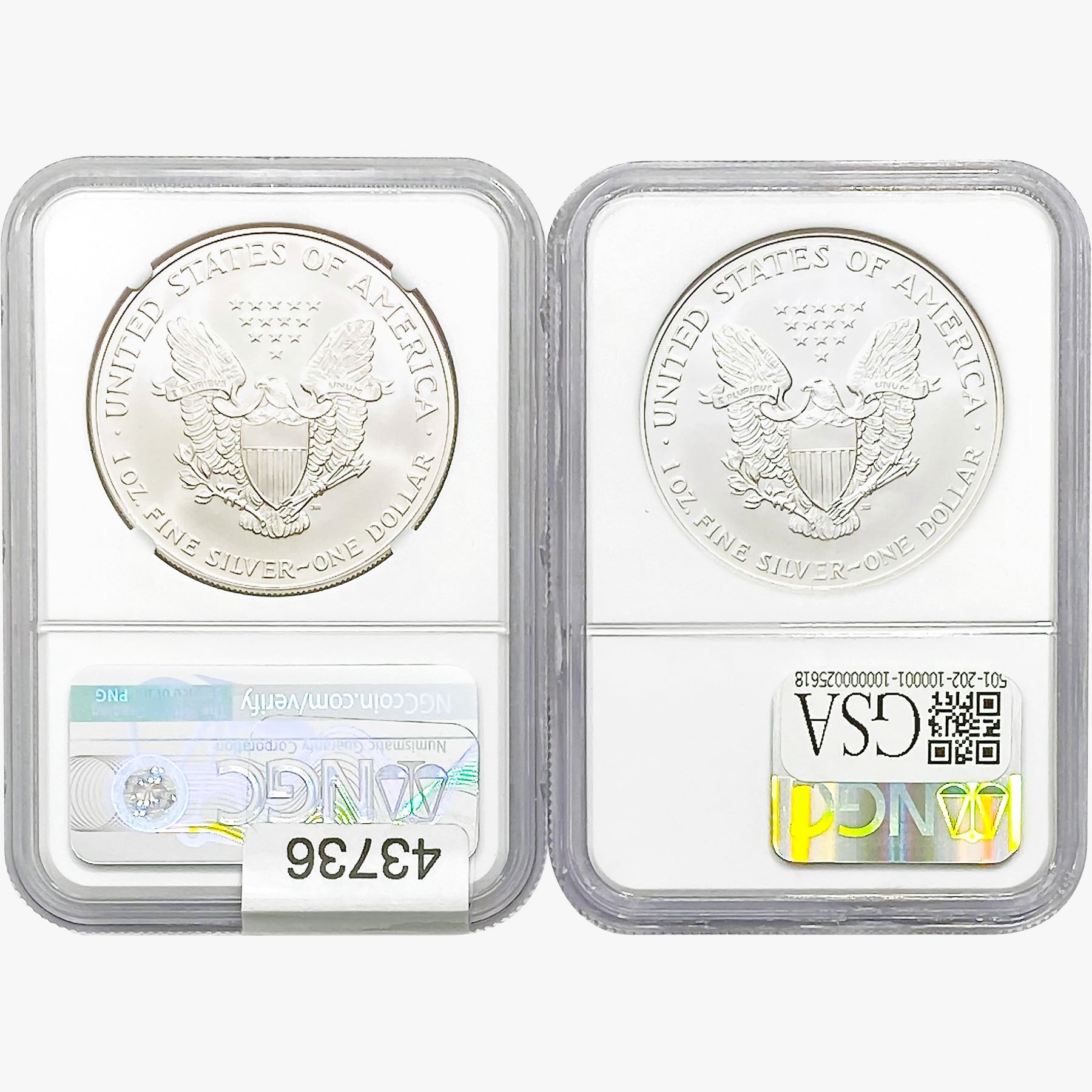 e. Coins sold referencing a third-party grading service are sold “AS IS” without any express or implied warranty, except for a guarantee by GSA that they are genuine. Removal or alteration of the holder, voids all of Bidder’s claims concerning that Product. Certain warranties may be available from the grading services and Bidders are referred to them for further details: Numismatic Guaranty Corporation (NGC), PO Box 4776, Sarasota, FL 34230, www.ngccoin.com/services/writtenguarantee.asp; Professional Coin Grading Services (PCGS), PO Box 9458, Newport Beach, CA 92658, www.pcgs.com/guarantee.html; ANACS, 6555 S. Kenton St., Ste. 303, Englewood, CO 80111; and Independent Coin Grading Co. (ICG), 7901 East Bellview, Ave., Suite 50, Englewood, CO 80111.