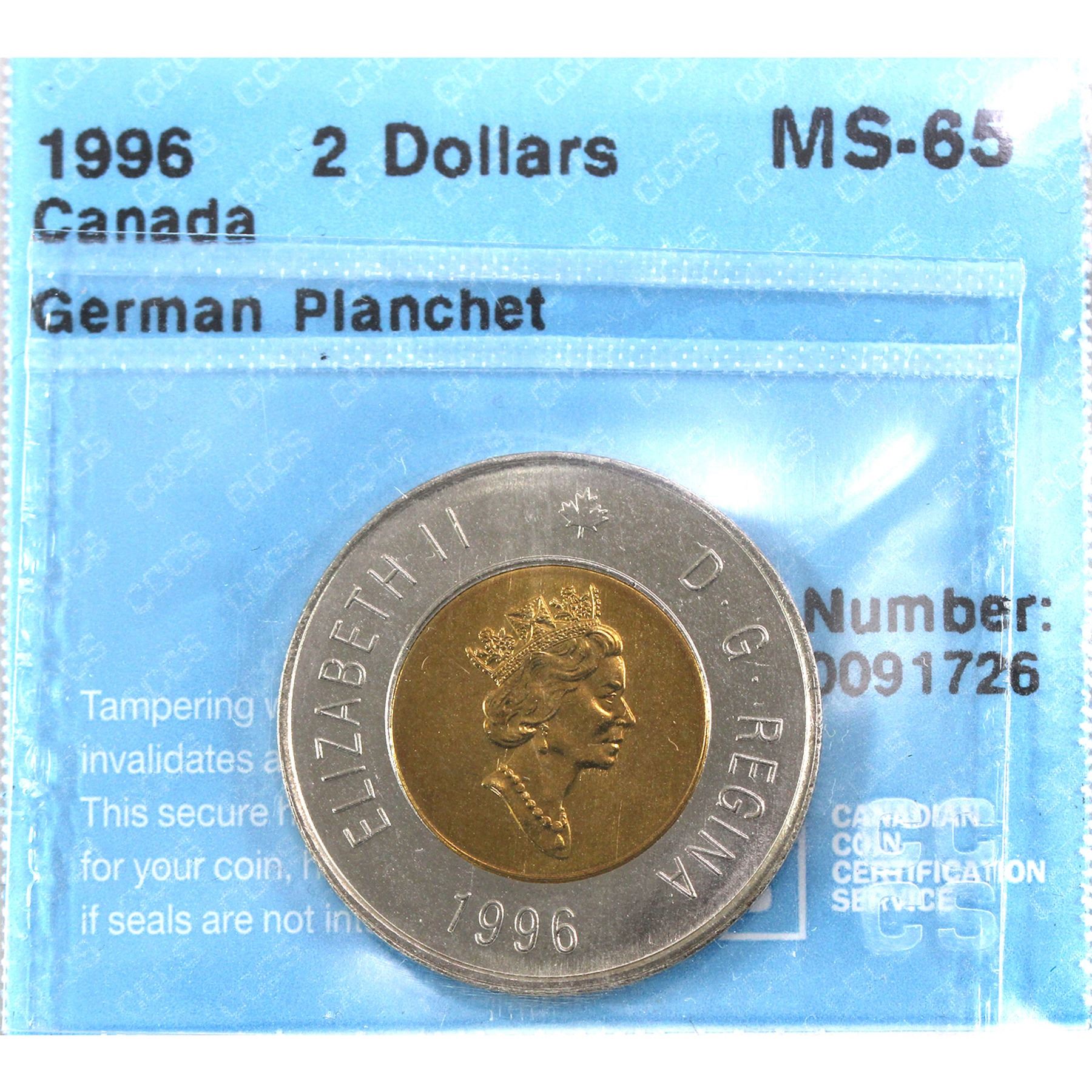 $2 1996 German Planchet CCCS Certified MS65