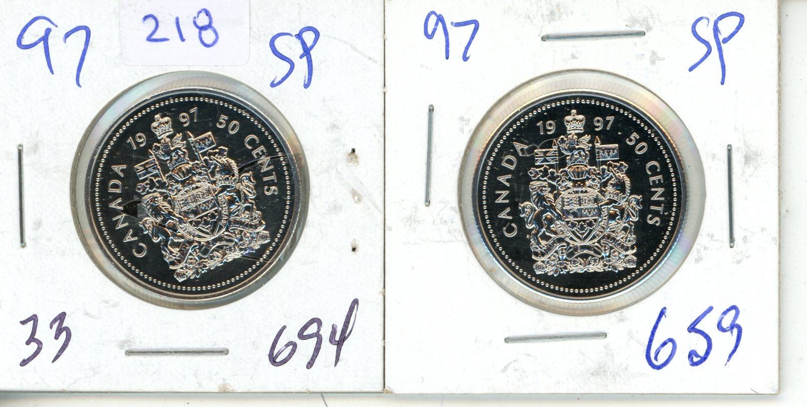 (2) 1997 Canadian 50 Cents Coin.