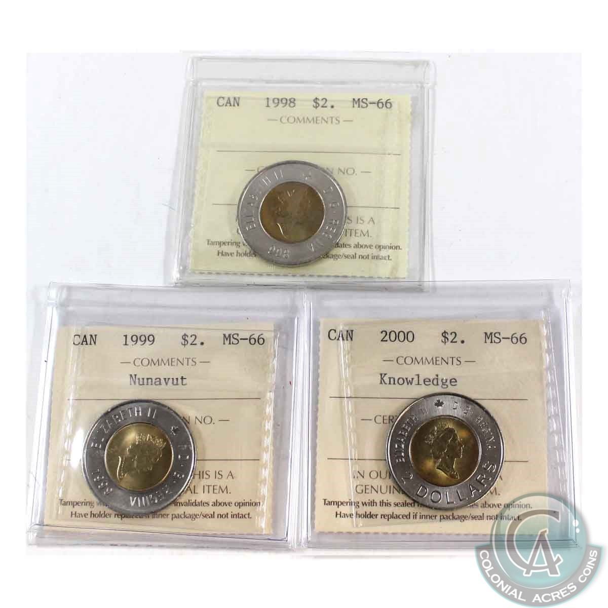 $2 1998, 1999 Nunavut & 2000 Knowledge ICCS Certified MS-66. 3pcs