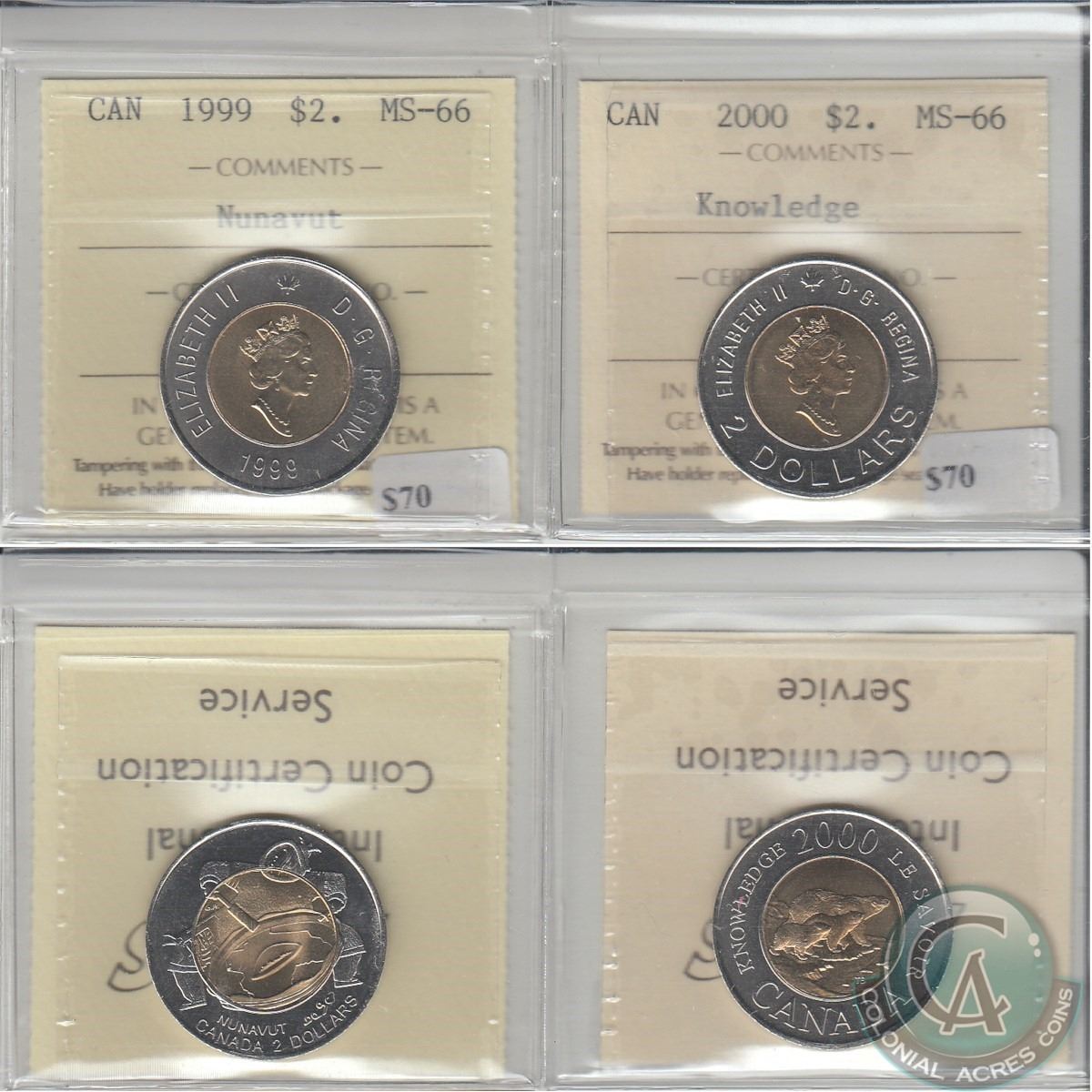 $2 1999 Nunavut & 2000 Knowledge ICCS Certified MS-66. 2pcs.