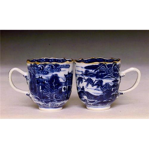 Pair of 19th Century Chinese Blue & White Export Tea Cups with Crown Rim