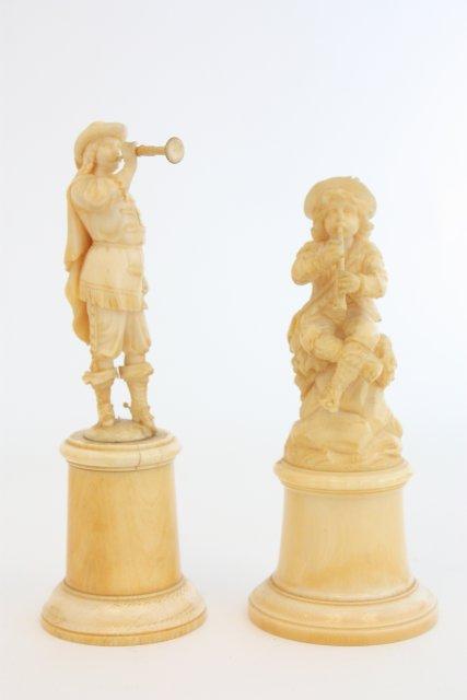 1-5.5" H "Boy with Horn" on pedestal. 1-6" H "Man with Horn" on pedestal, horn glued. Please read our terms of sale.