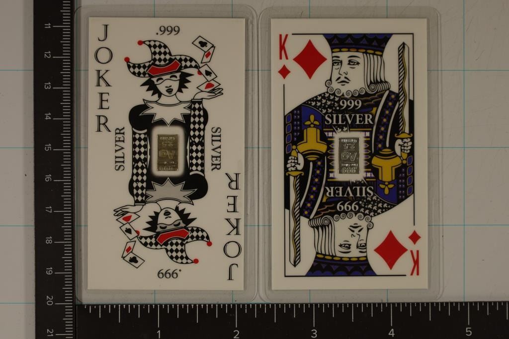 IN LAMINATED PLAYING CARDS. JOKER AND KING OF DIAMONDS