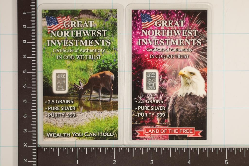 INGOTS IN LAMINATED CARDS, DEER AND EAGLE SCENE
