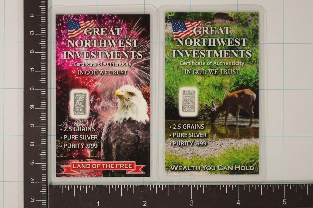 LAMINATED CARDS FROM GREAT NORTHWEST INVESTMENTS. MADE IN THE USA. ONE IS DEER SCENE AND THE OTHER EAGLE.